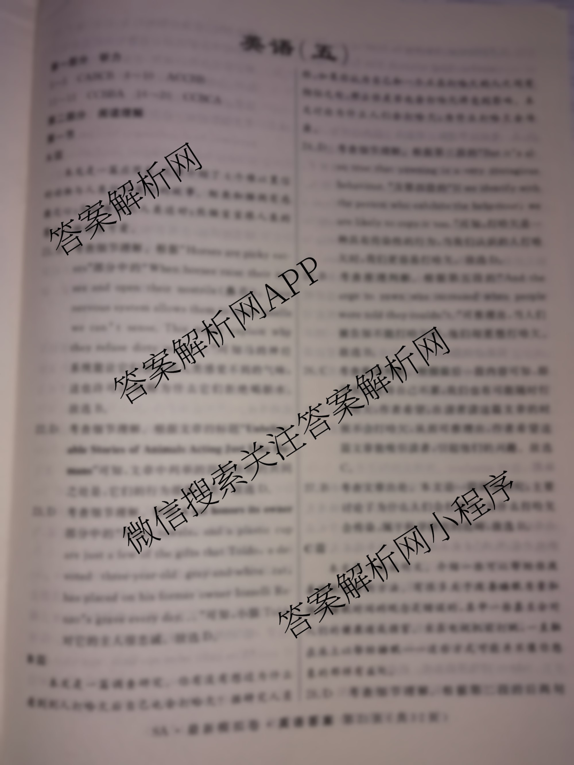 江淮名校2021年普通高等学校招生全国统一考试SA最新模拟卷(五)英语答案