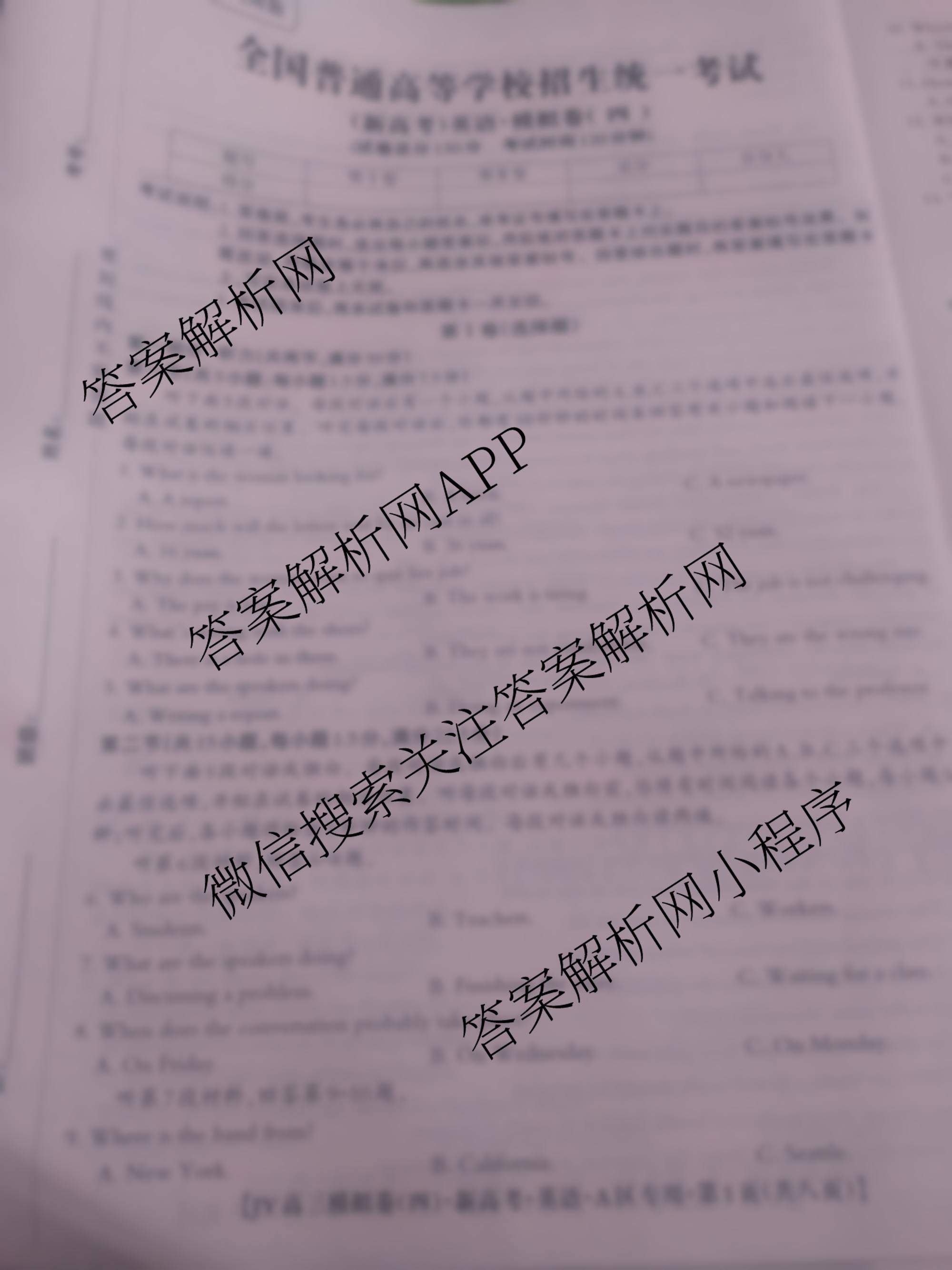 - 2021届JY[高三]模拟卷·新高考·A区专用(四)英语试题