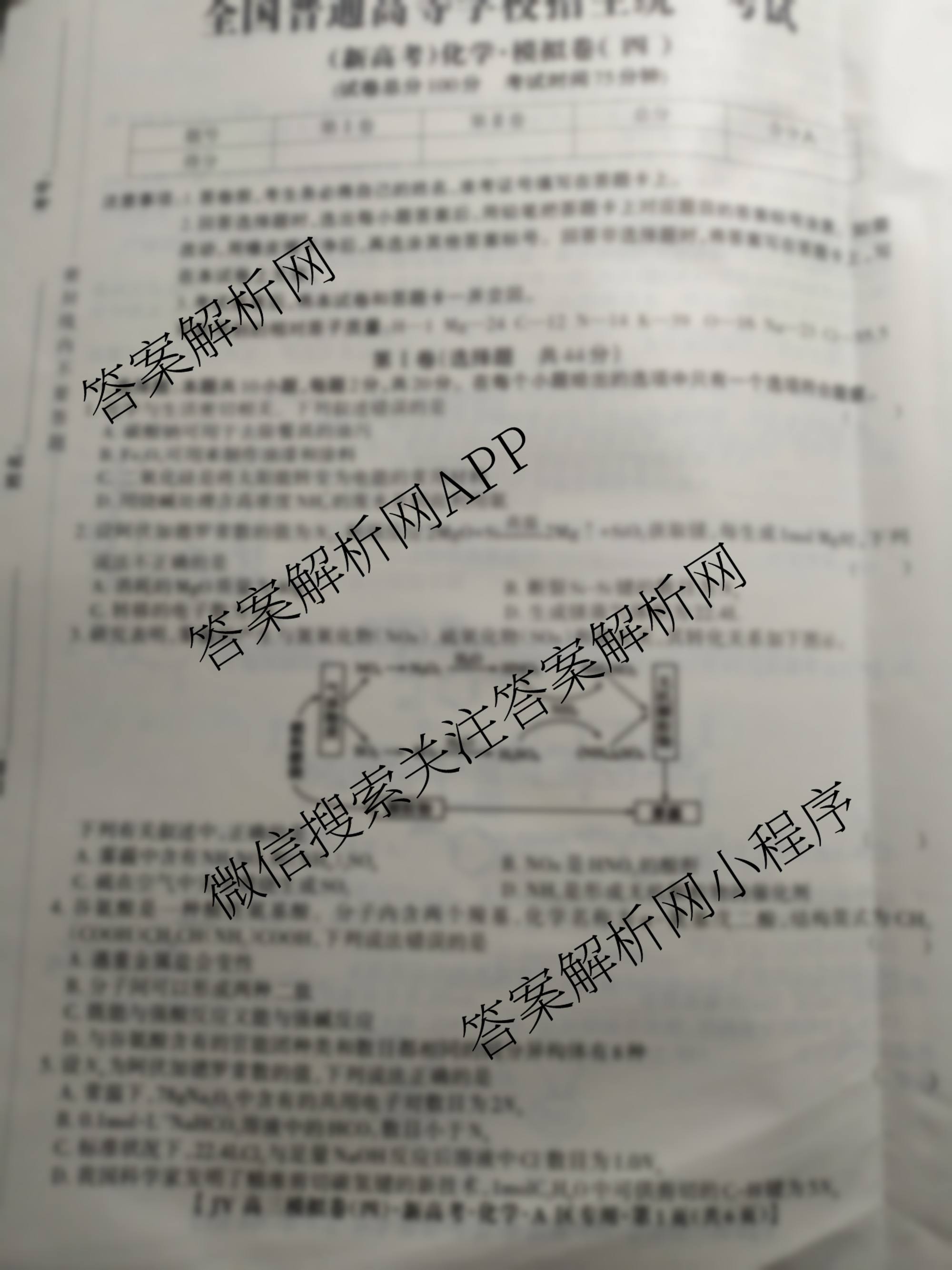 2021届JY高三模拟卷·新高考·A区专用(四)化学试题,目前学英语报答案已经汇总了2021届JY高三模拟卷·新高考·A区专用(四)化学试题的各科答案和试卷,获取更多金优JY答案解析,请在关注本站。
