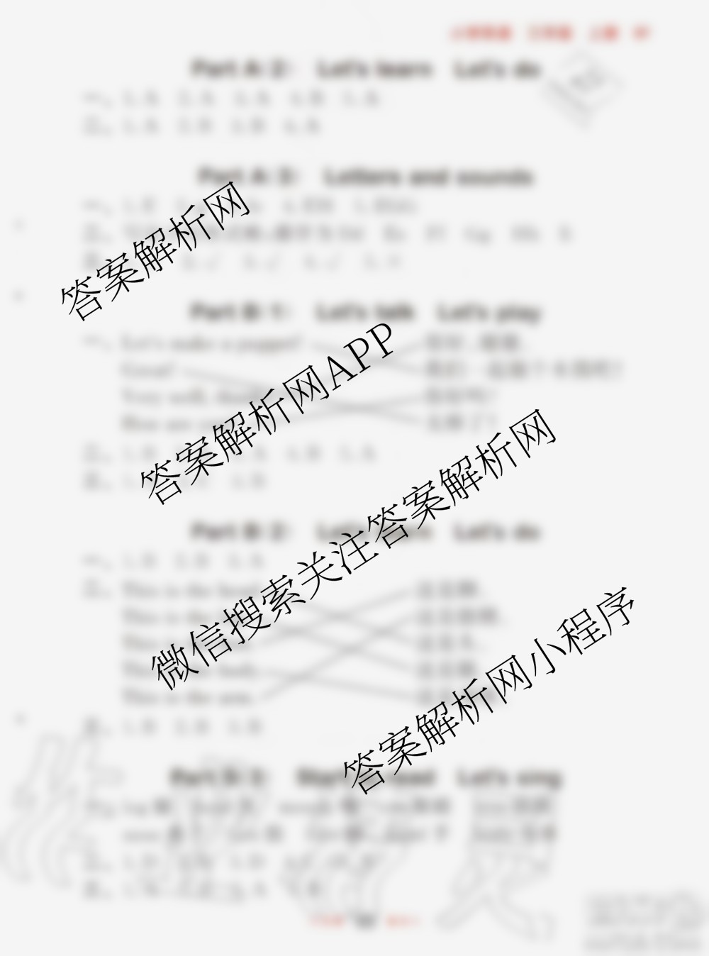 2020秋小儿郎53随堂测三年级英语上册人教版参考答案
