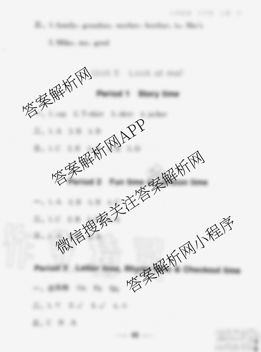 2020秋小儿郎53随堂测三年级英语上册译林版参考答案