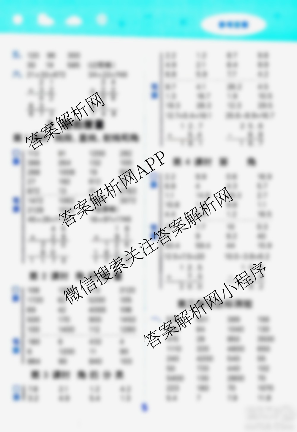 小儿郎2020秋季小学口算大通关数学四年级上册RJ人教版参考答案