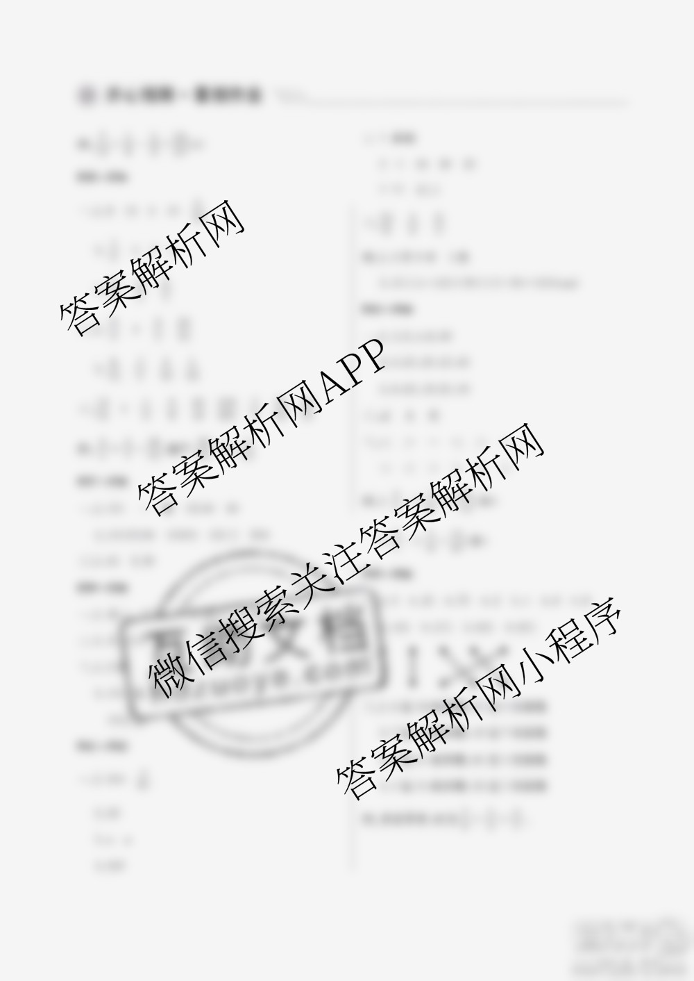 武汉出版社2020年开心假期暑假作业五年级数学人教版答案