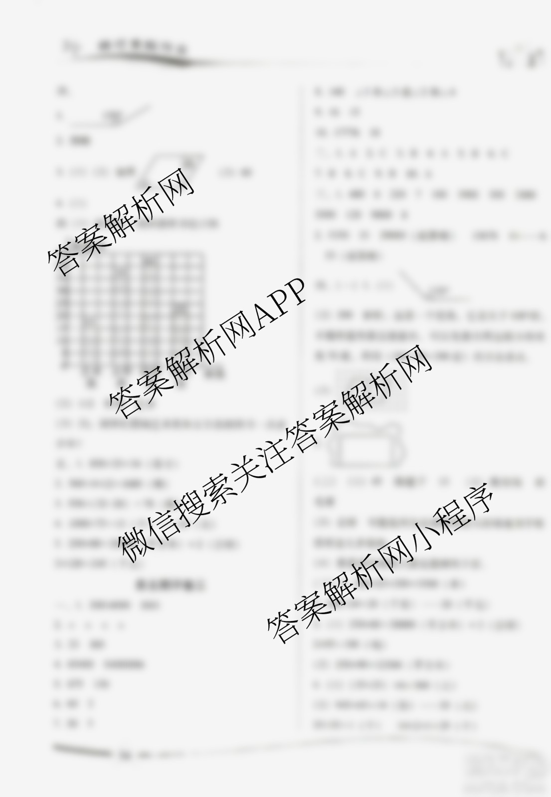 云南美术出版社2020精巧寒假作业专题训练与期末总复习四年级数学人教版答案