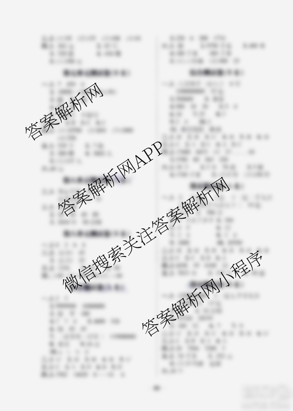 青岛出版社2019年随堂大考卷数学四年级上册青岛版参考答案