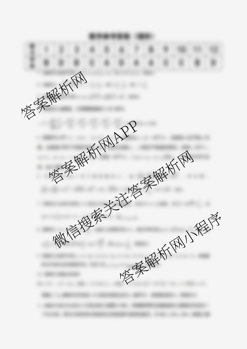 - 安徽省(皖江名校联盟)2020届[高三]下学期第五次联考理科数学答案