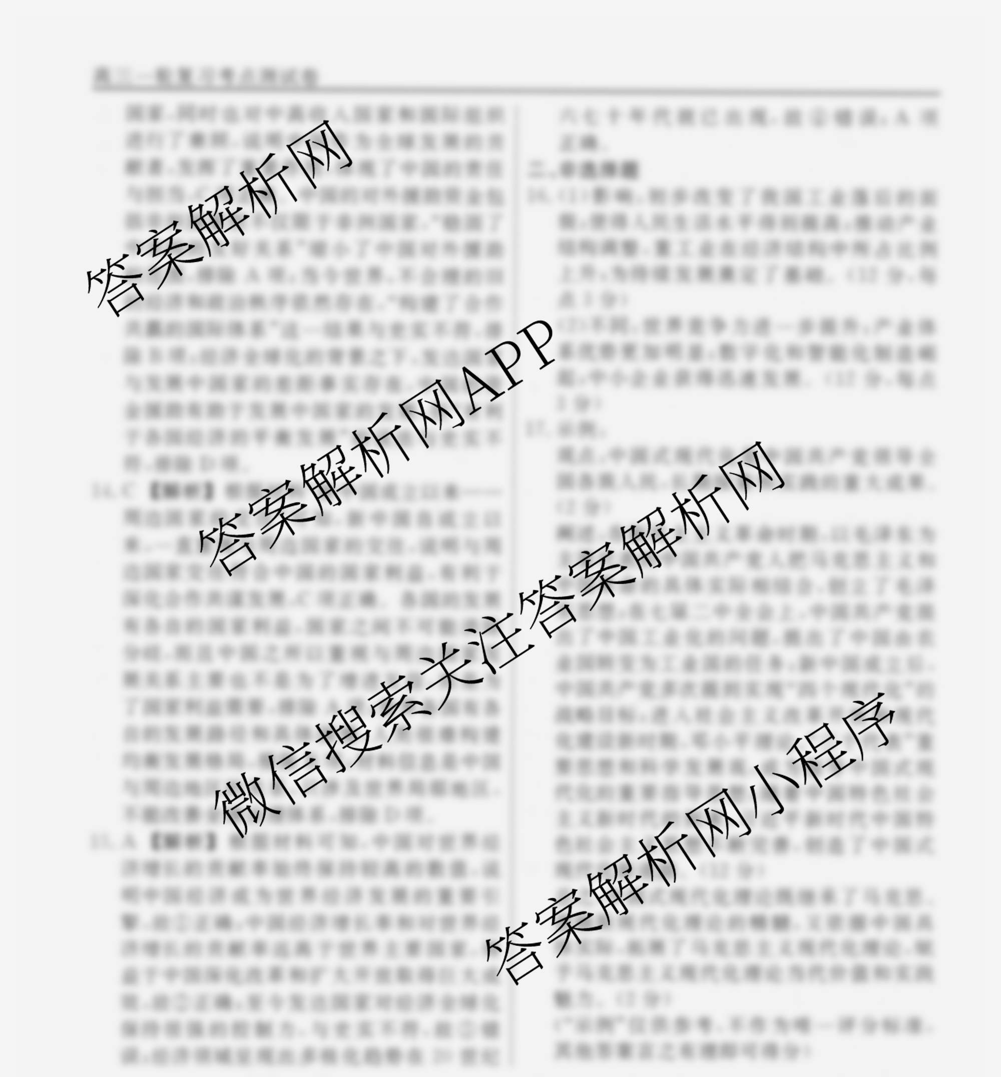衡水名师卷2024-2025学年度高三一轮复习考点测试卷历史(40分钟空心菱形)(十五)15答案