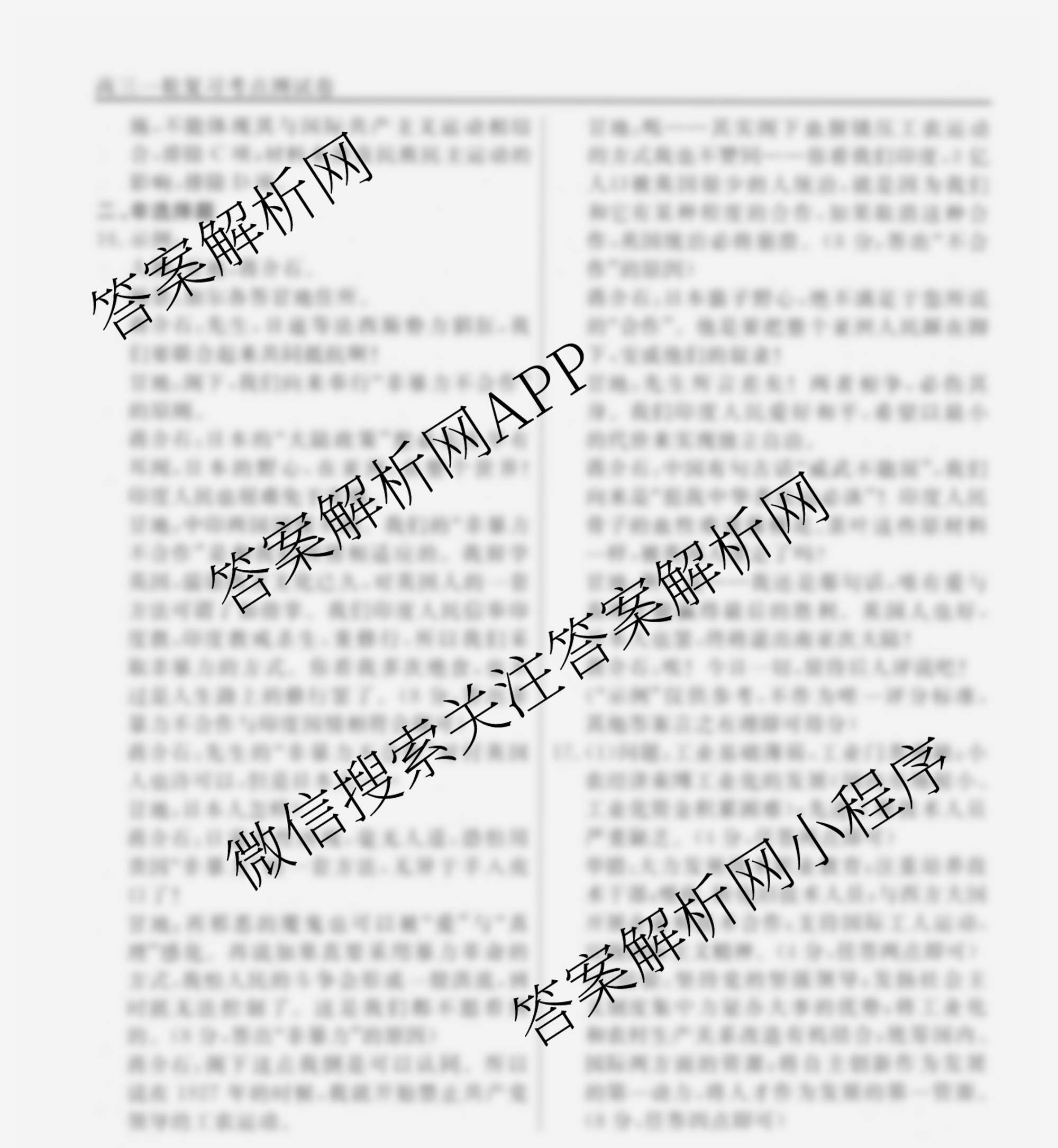 衡水名师卷2024-2025学年度高三一轮复习考点测试卷历史(40分钟空心菱形)(二十三)23答案