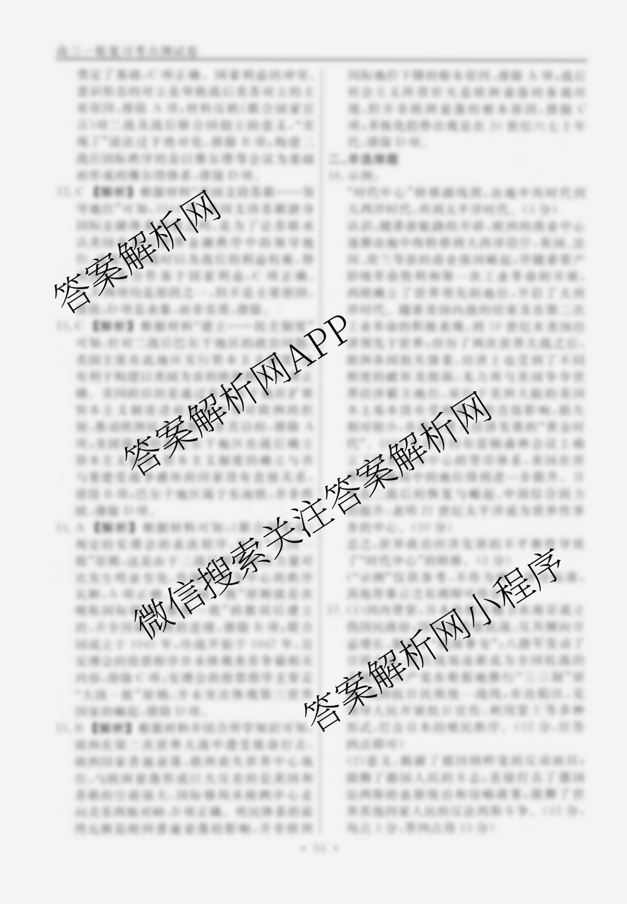 衡水名师卷2024-2025学年度高三一轮复习考点测试卷历史(40分钟空心菱形)(二十四)24答案