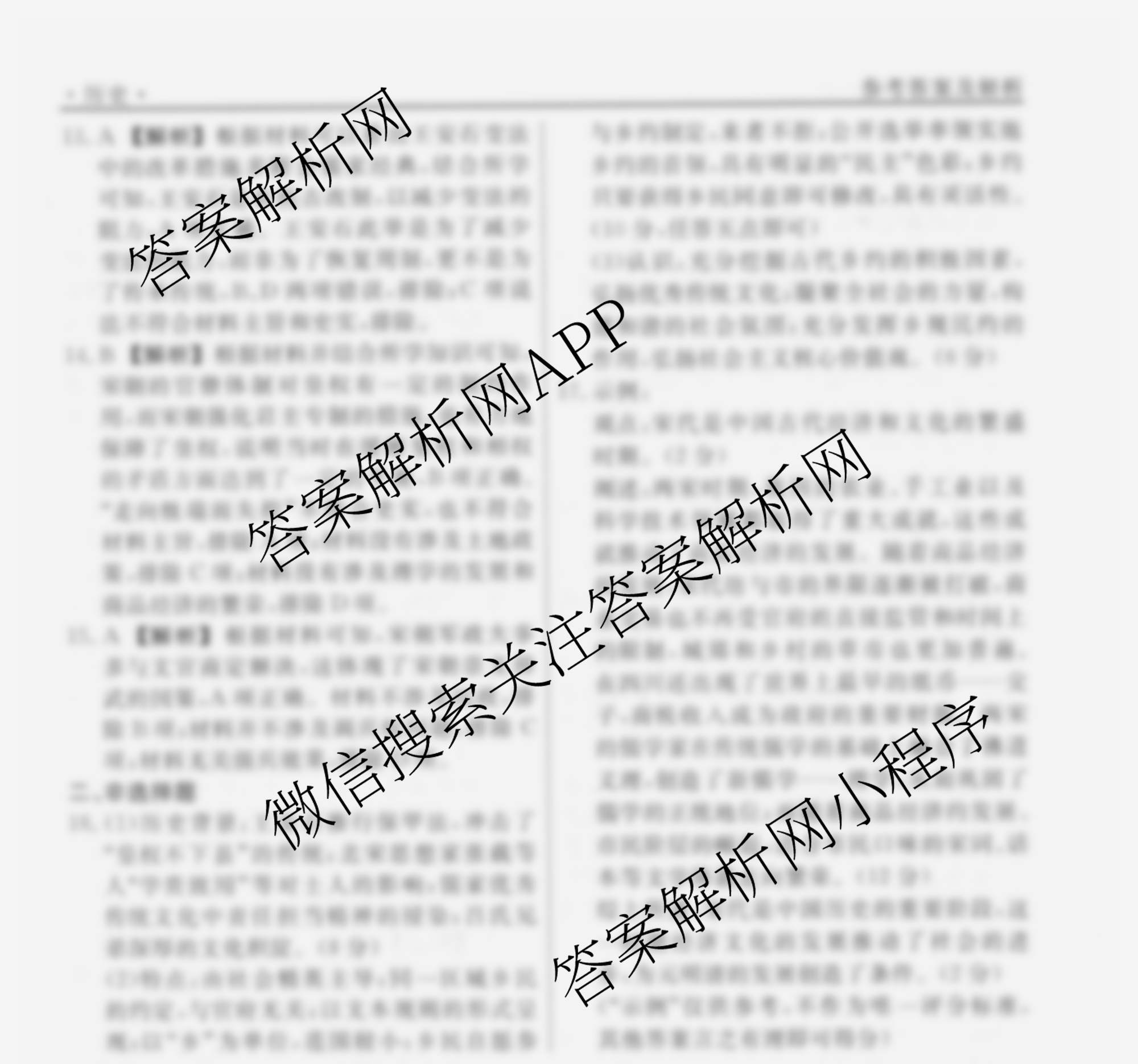衡水名师卷2024-2025学年度高三一轮复习考点测试卷历史(40分钟空心菱形)(五)5答案