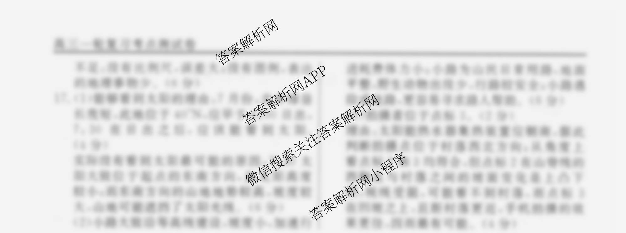 衡水名师卷2024-2025学年度高三一轮复习考点测试卷地理(40分钟空心菱形)(一)1答案