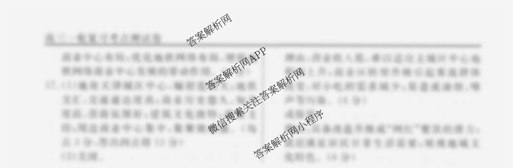 衡水名师卷2024-2025学年度高三一轮复习考点测试卷地理(40分钟空心菱形)(十九)19答案