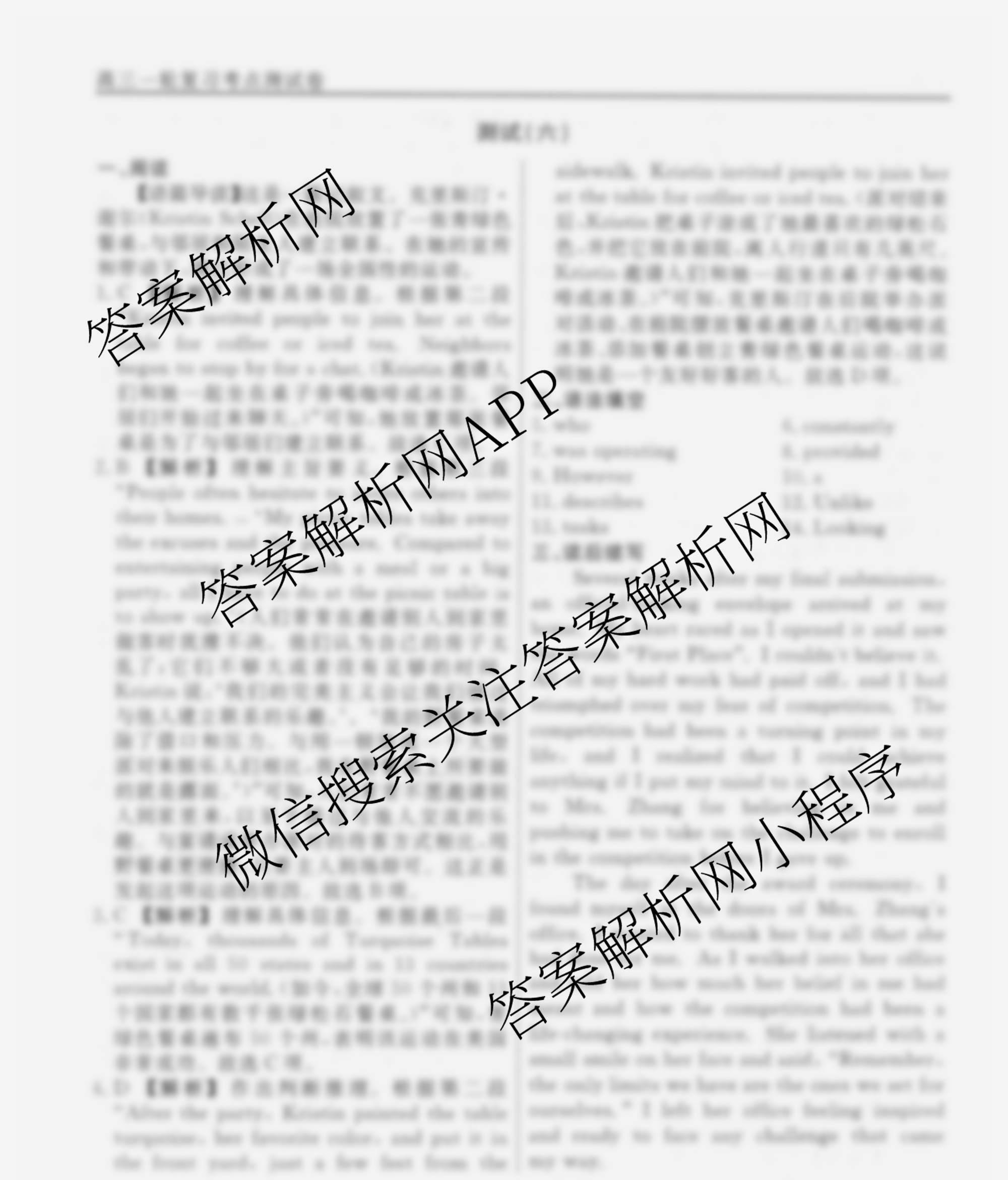 衡水名师卷2024-2025学年度高三一轮复习考点测试卷英语(40分钟空心菱形)(六)6答案