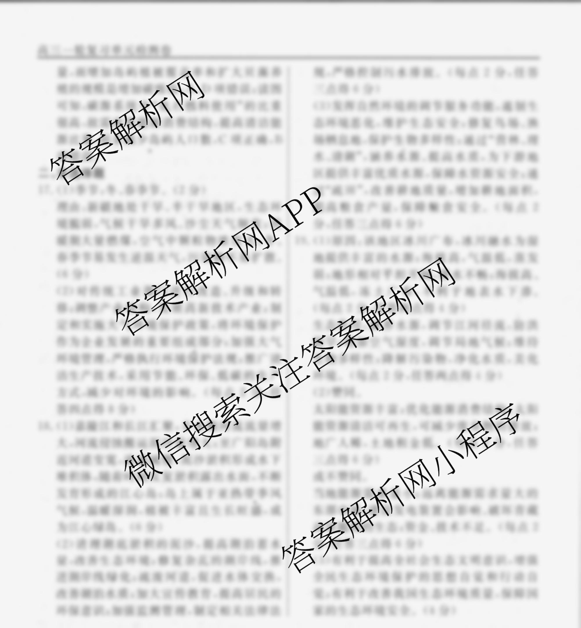 衡水名师卷2024-2025学年度高三一轮复习单元检测卷地理(空心菱形)检测(十八)18答案