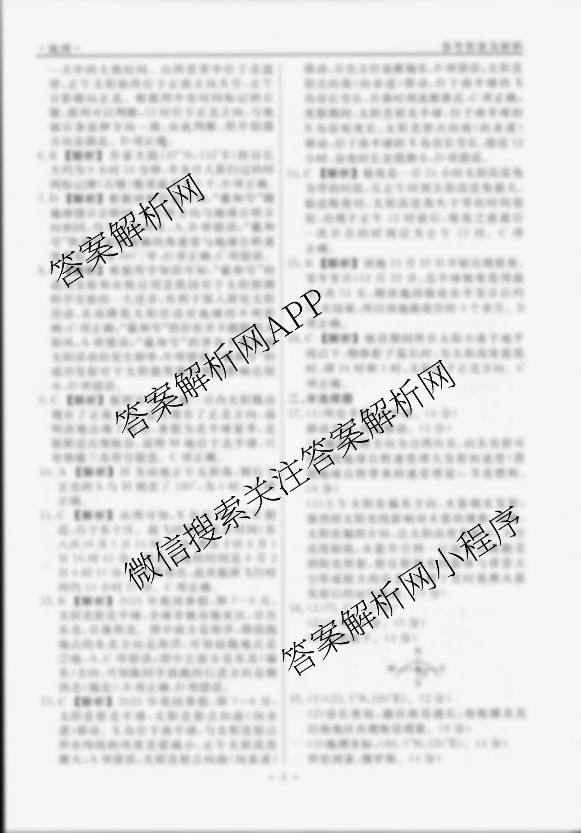 衡水名师卷2024-2025学年度高三一轮复习单元检测卷地理(空心菱形)检测(二)2答案