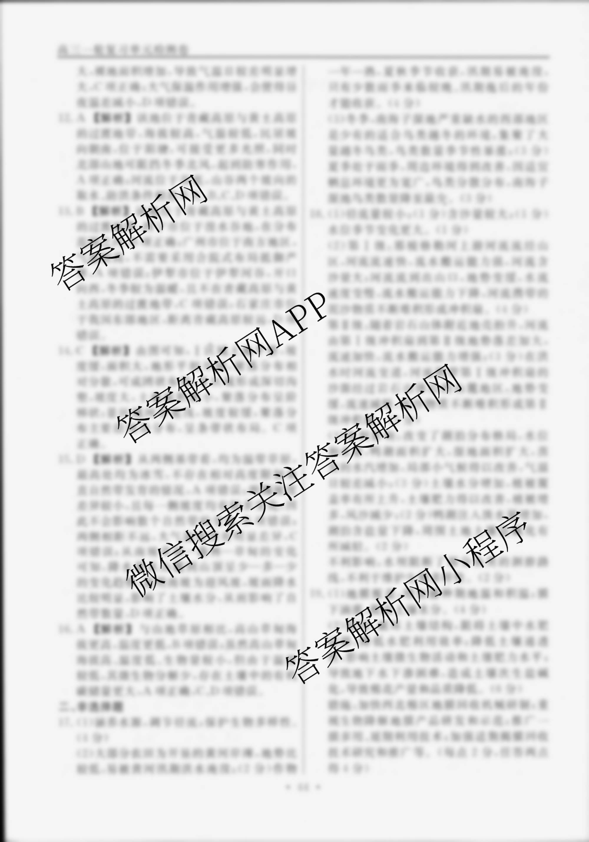 衡水名师卷2024-2025学年度高三一轮复习单元检测卷地理(空心菱形)检测(二十二)22答案