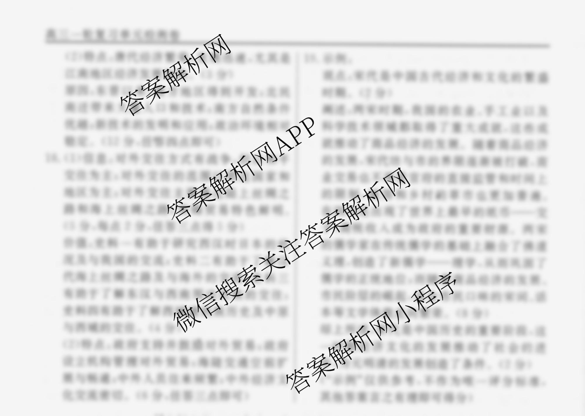 衡水名师卷2024-2025学年度高三一轮复习单元检测卷历史(双菱形)检测(三)3答案