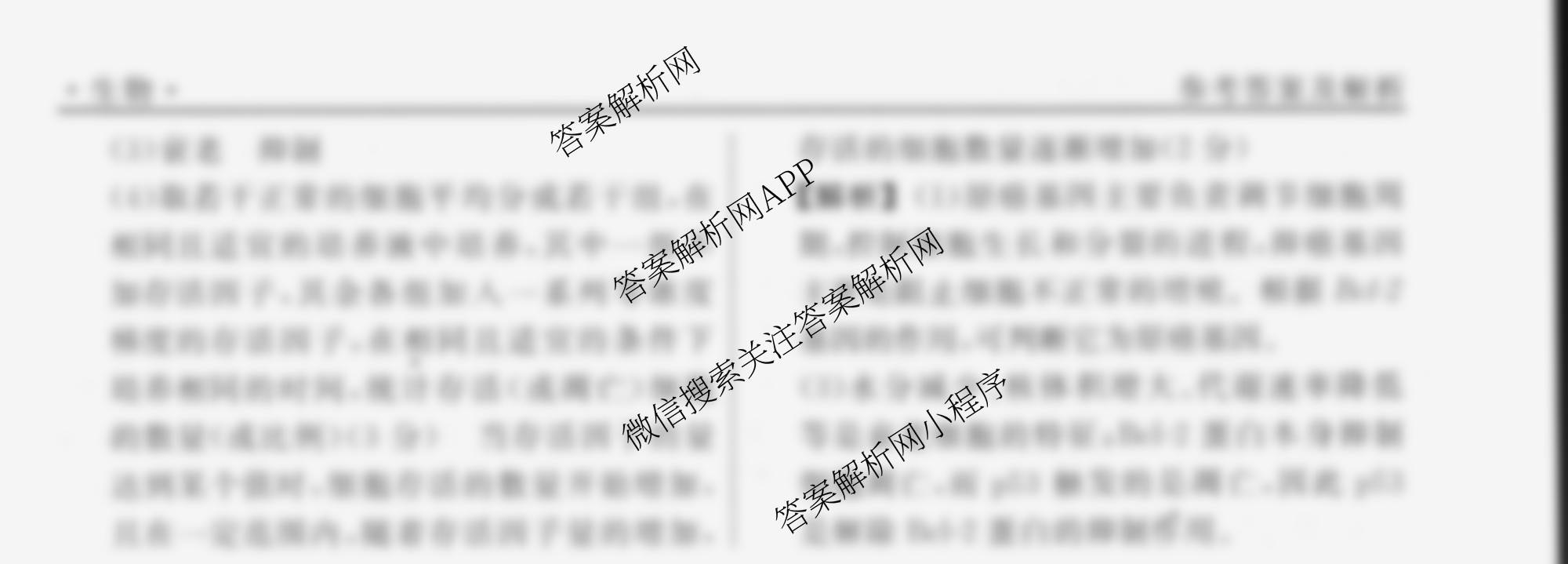 衡水名师卷2024-2025学年度高三一轮复习单元检测卷生物(实心圆)检测(四)4答案