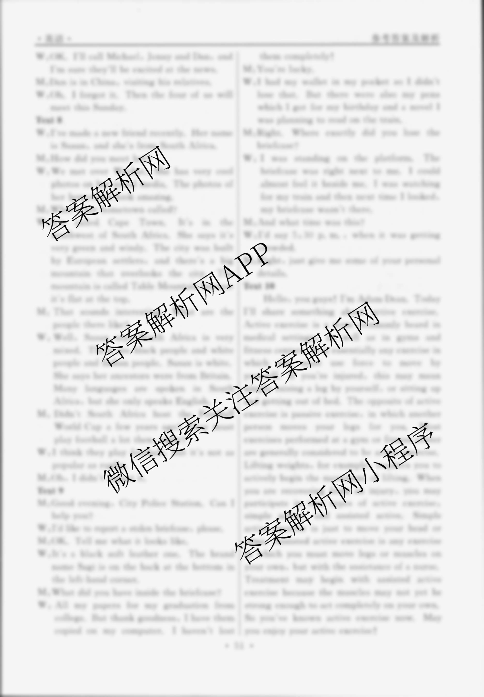 衡水名师卷2024-2025学年度高三一轮复习单元检测卷英语(空心菱形)检测(十一)11答案