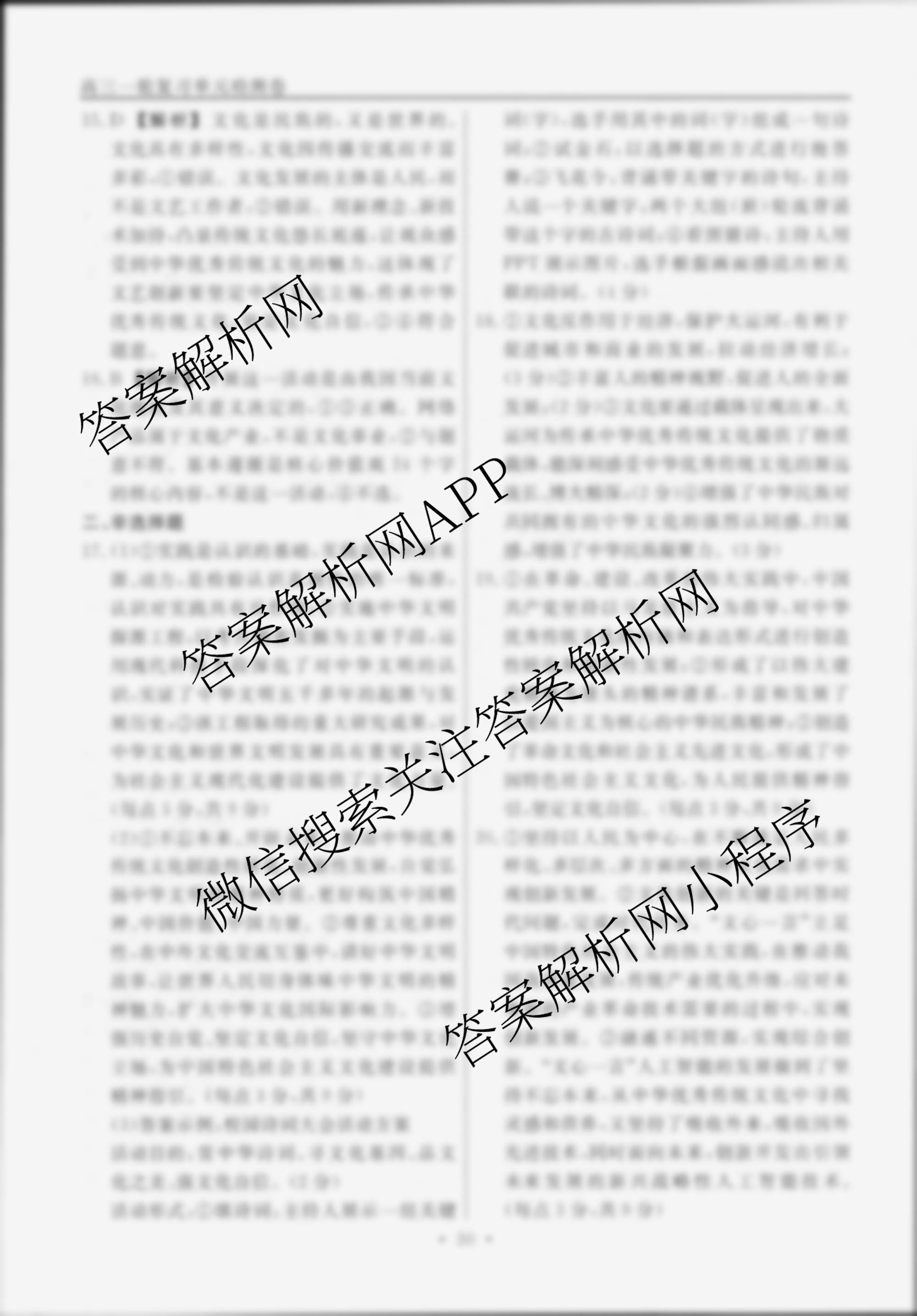 衡水名师卷2024-2025学年度高三一轮复习单元检测卷政治(双菱形)检测(十)10答案