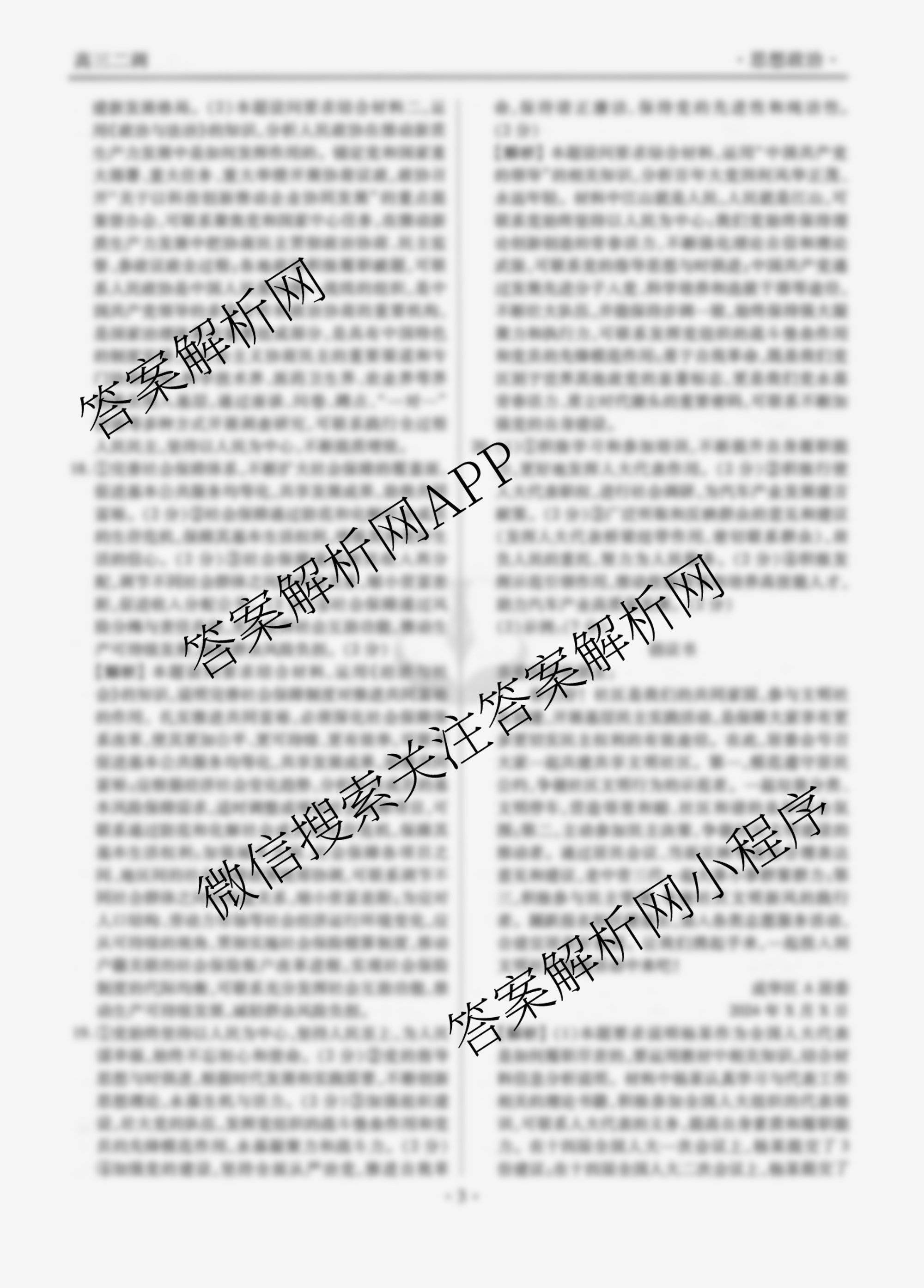 衡水金卷先享题月考卷2024~2025学年度上学期(高三)年级二调考试政治答案