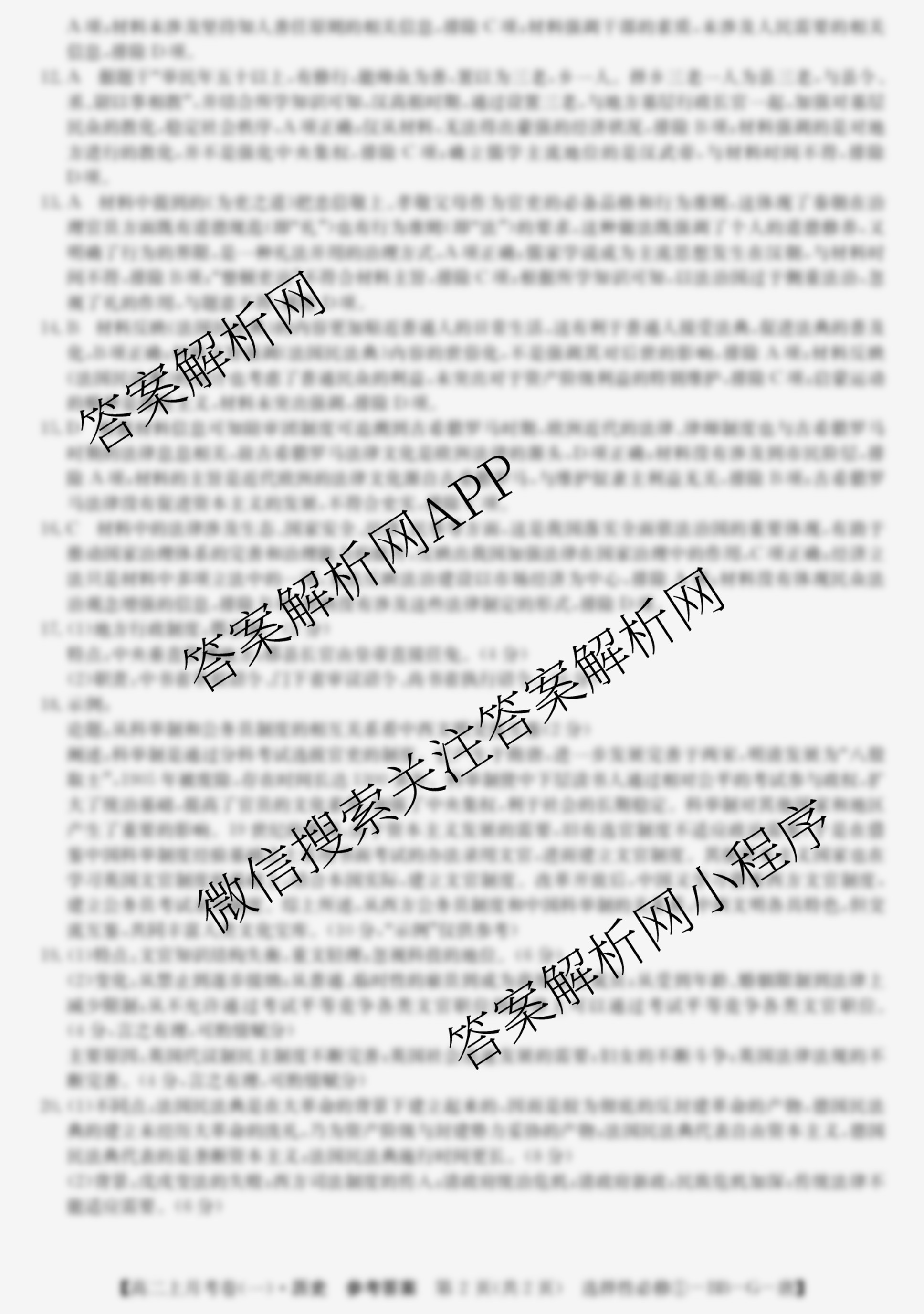- 2024~2025全国名校(高二)上学期第一次月考试卷历史(选择性必修②-BB-G-唐)答案