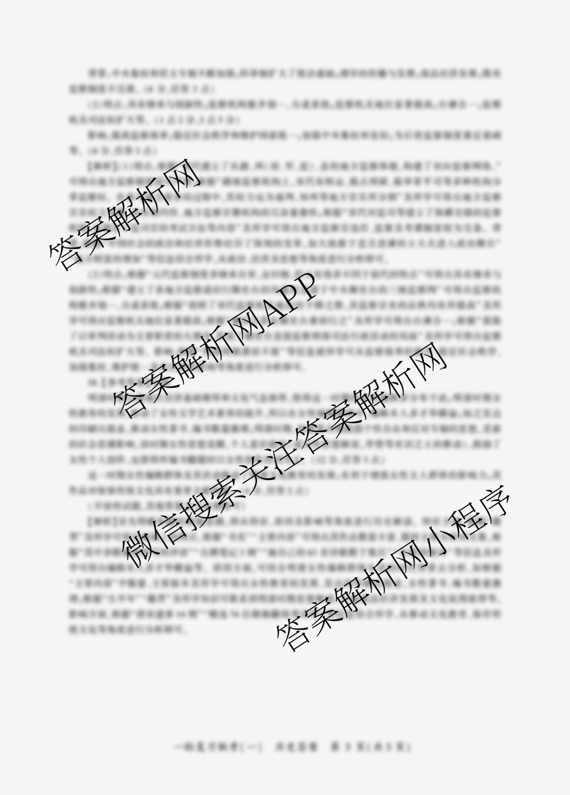 - (高三)[百师联盟]2025届一轮复习联考(一)历史(百A)答案