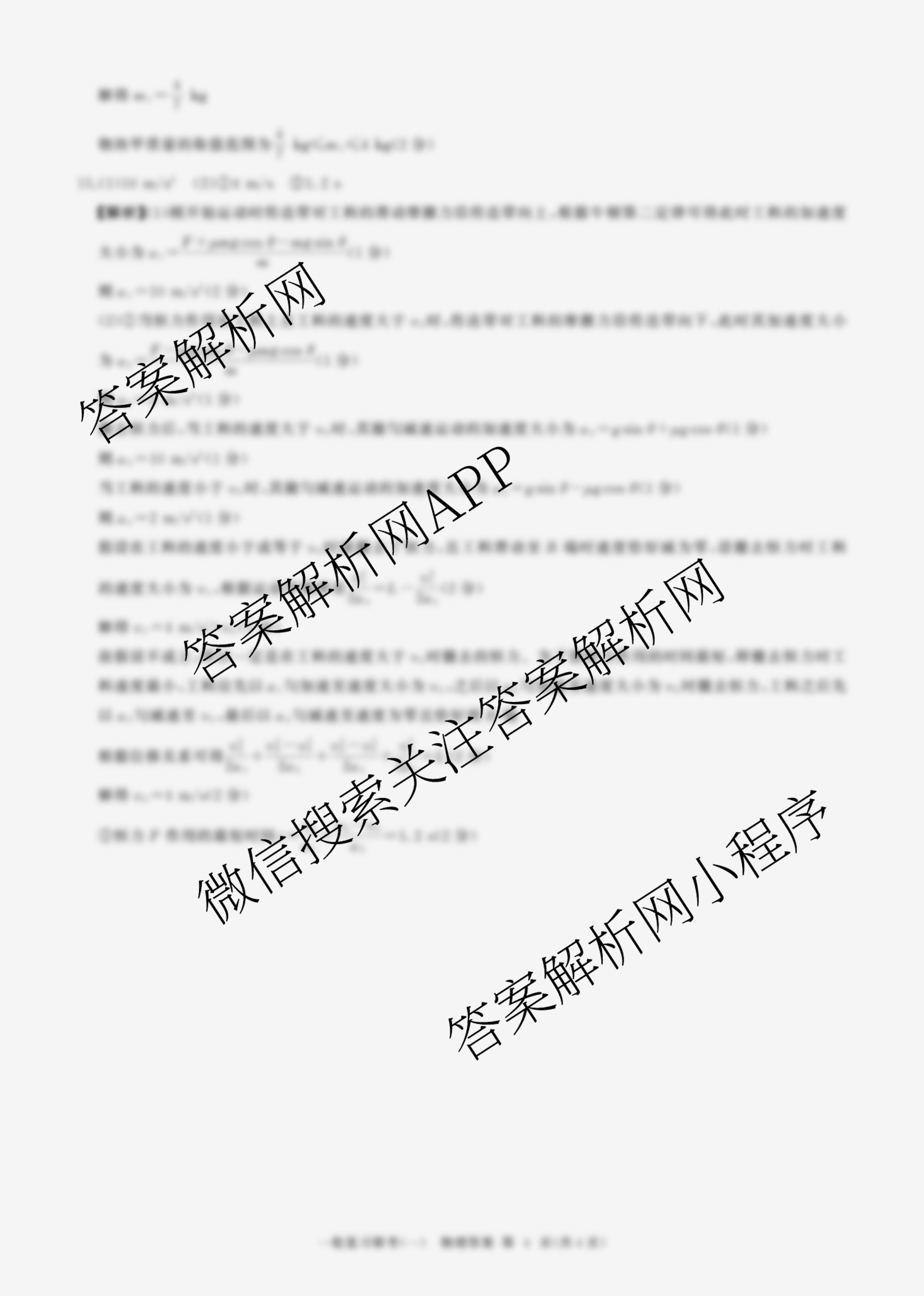 - (高三)(百师联盟)2025届一轮复习联考(一)物理(百N)答案