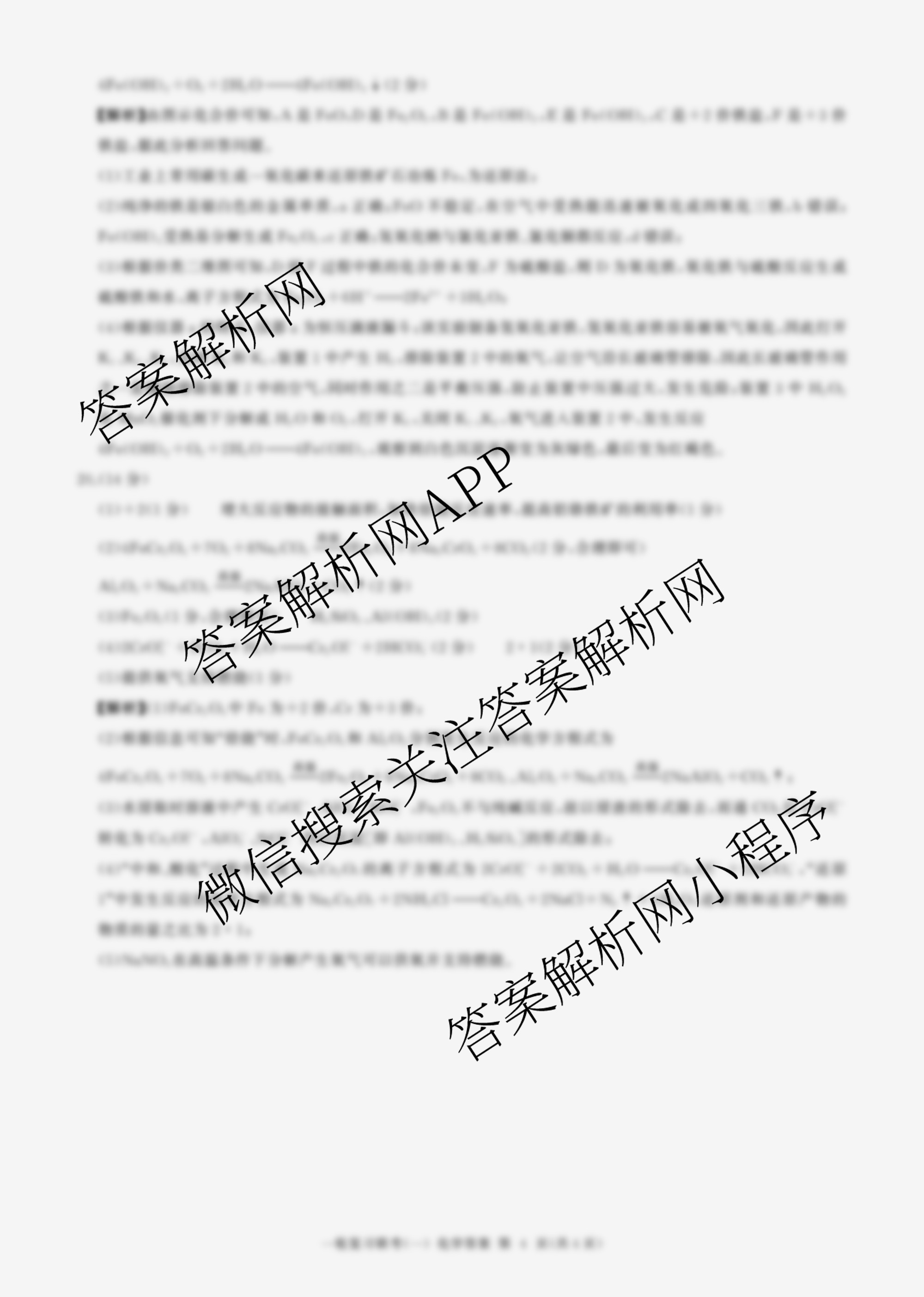 - 2025届[高三]百师联盟一轮复习联考(一)化学(百N)答案