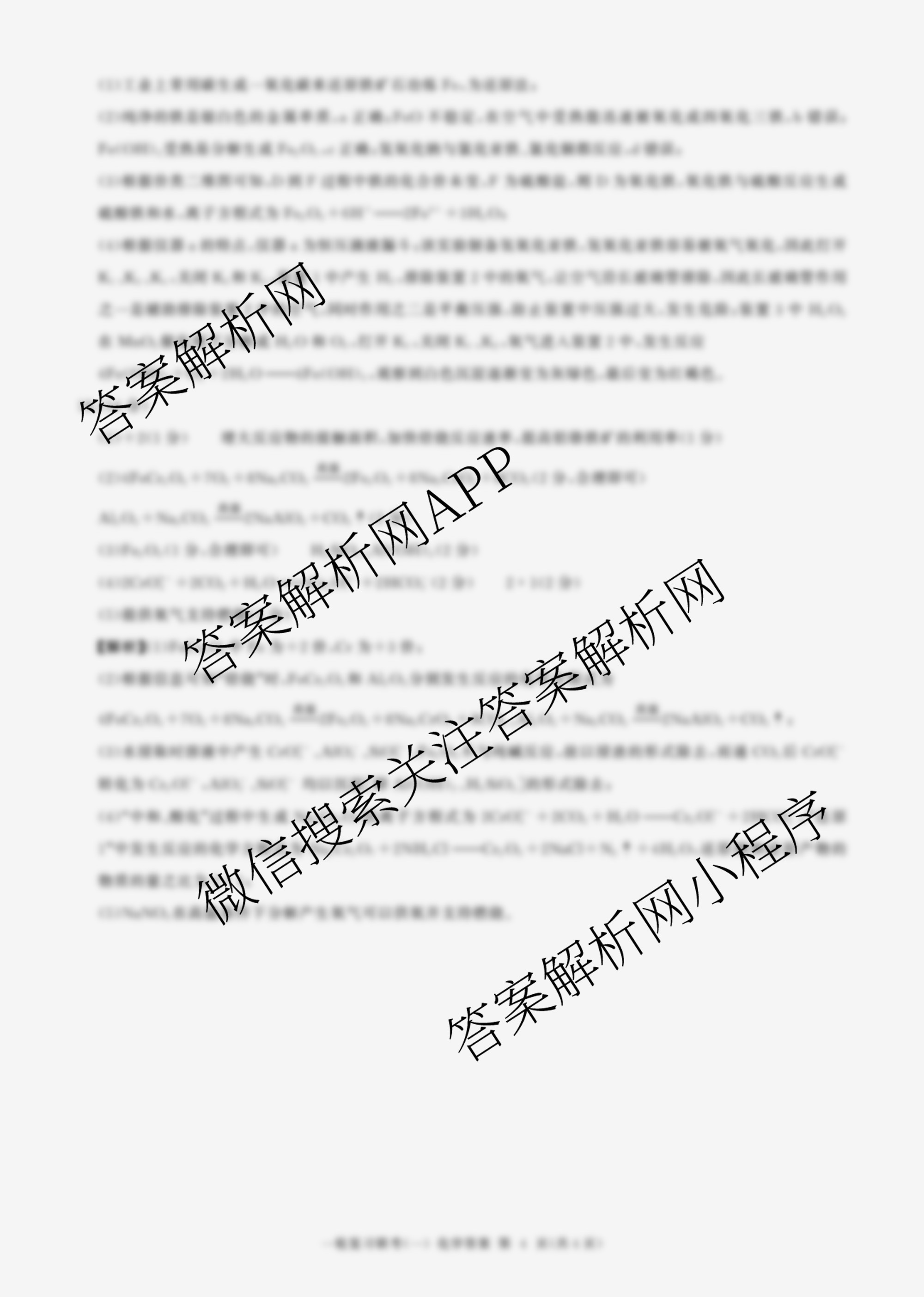 - 2025届[高三]百师联盟一轮复习联考(一)化学(百N)答案