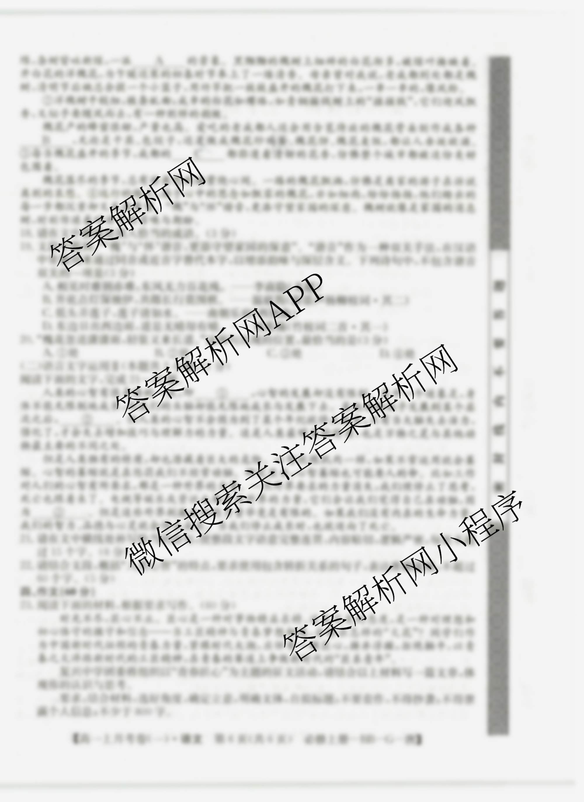 2024~2025全国名校高一上学期第一次月考试卷语文(必修上册-BB-G-唐)试题,目前学英语报答案已经汇总了2024~2025全国名校高一上学期第一次月考试卷语文(必修上册-BB-G-唐)试题的各科答案和试卷,获取更多全国名校月考试卷答案解析,请在关注本站。