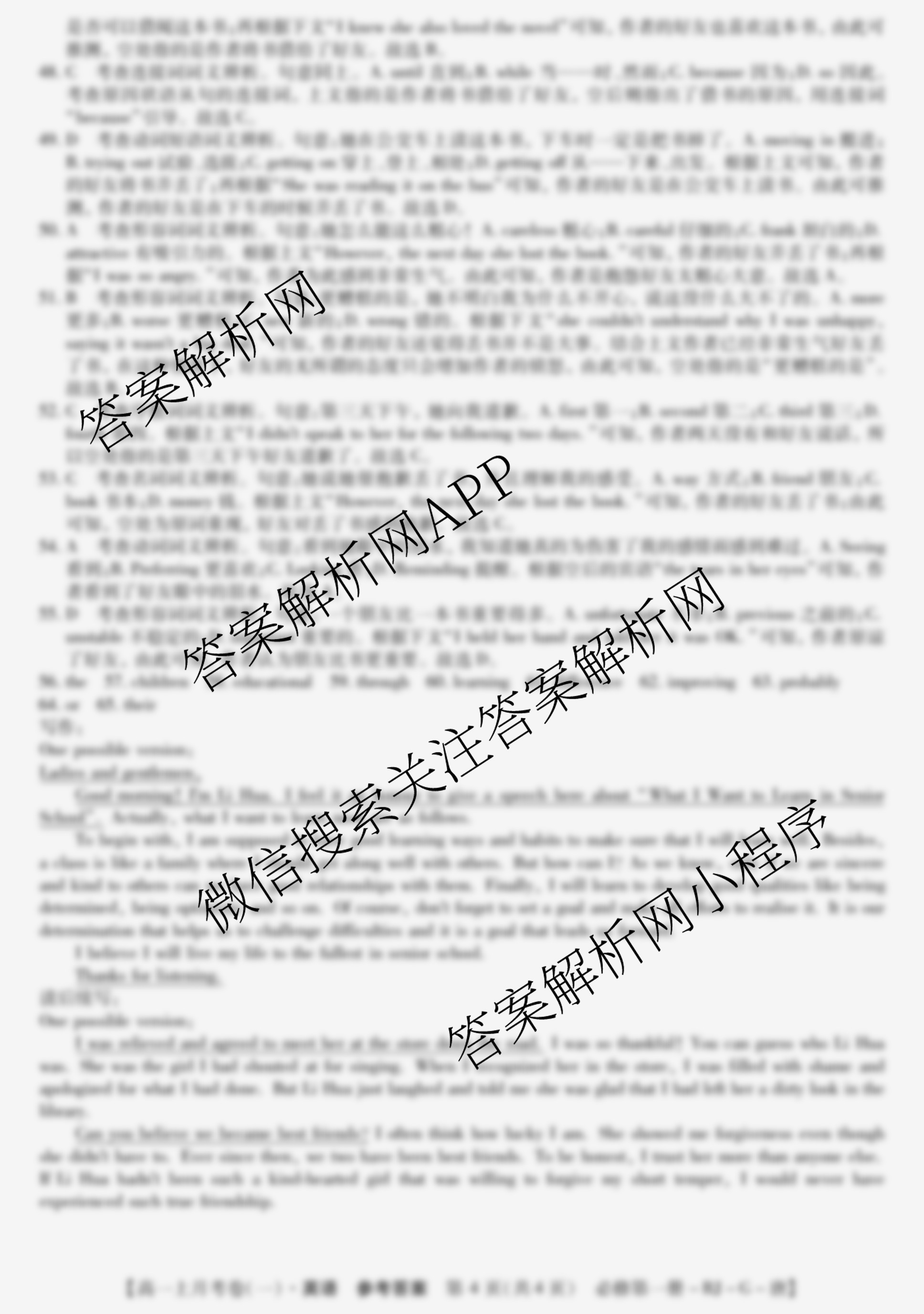 - 2024~2025全国名校[高一]上学期第一次月考试卷英语(必修第二册-WY-G-唐)答案