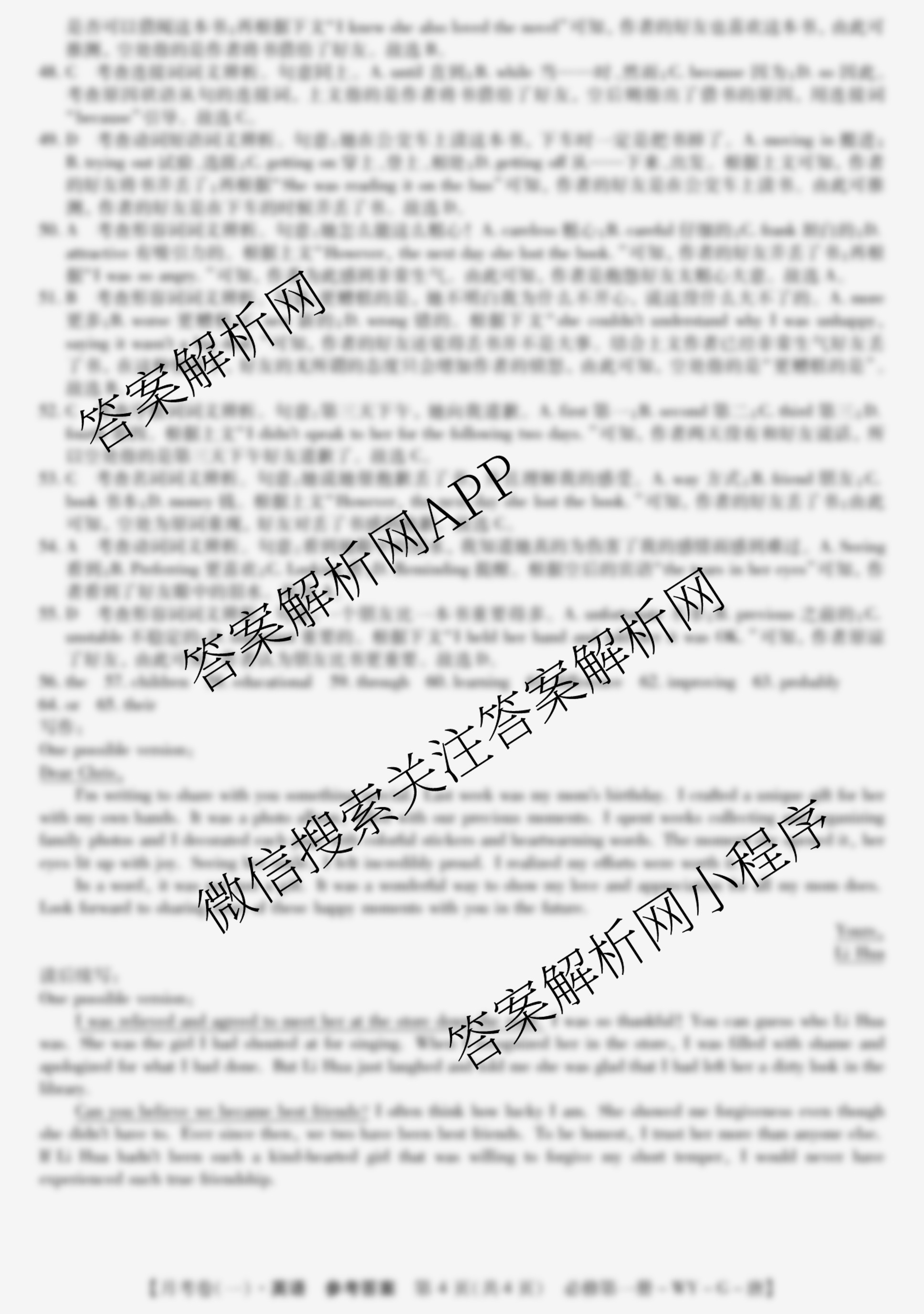 - 2024~2025全国名校[高一]上学期第一次月考试卷英语(必修第二册-WY-G-唐)答案