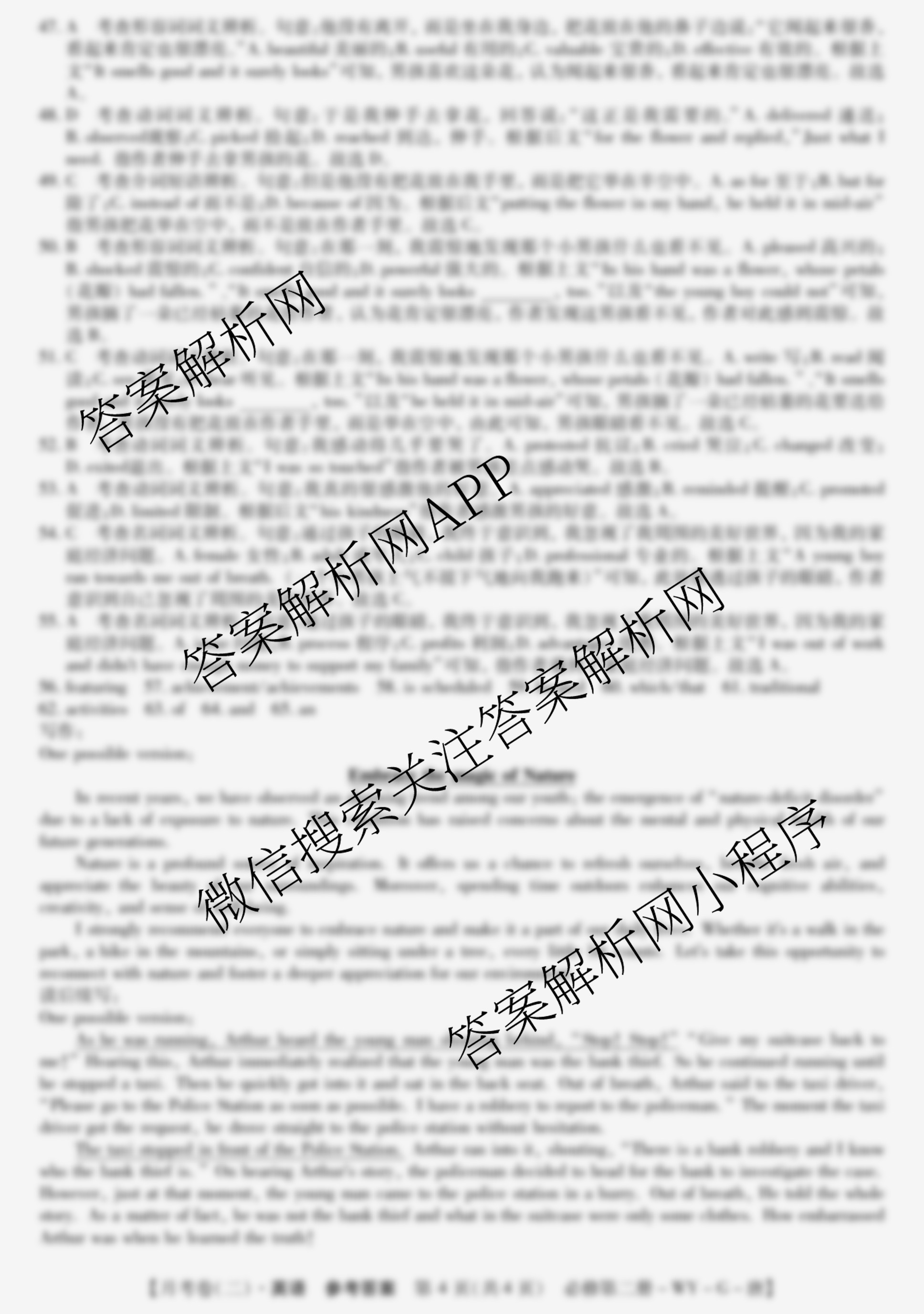 - 2024~2025(高一)全国名校上学期第二次月考试卷英语(必修第二册-WY-G-唐)答案