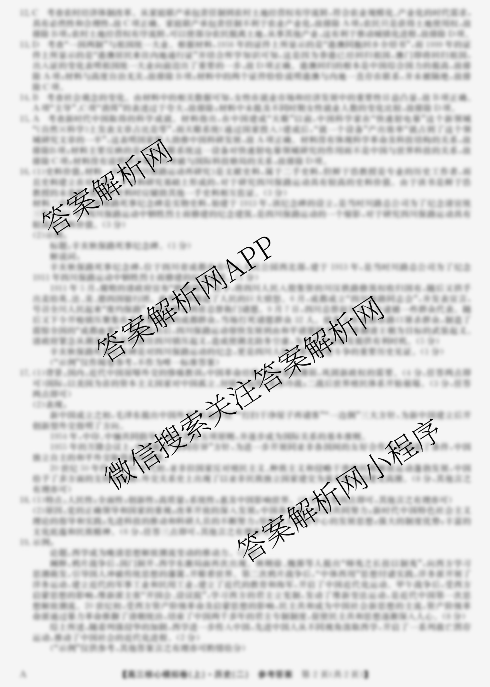 (九师联盟)2024~2025学年[高三]核心模拟卷(上)(二)2历史(A)答案
