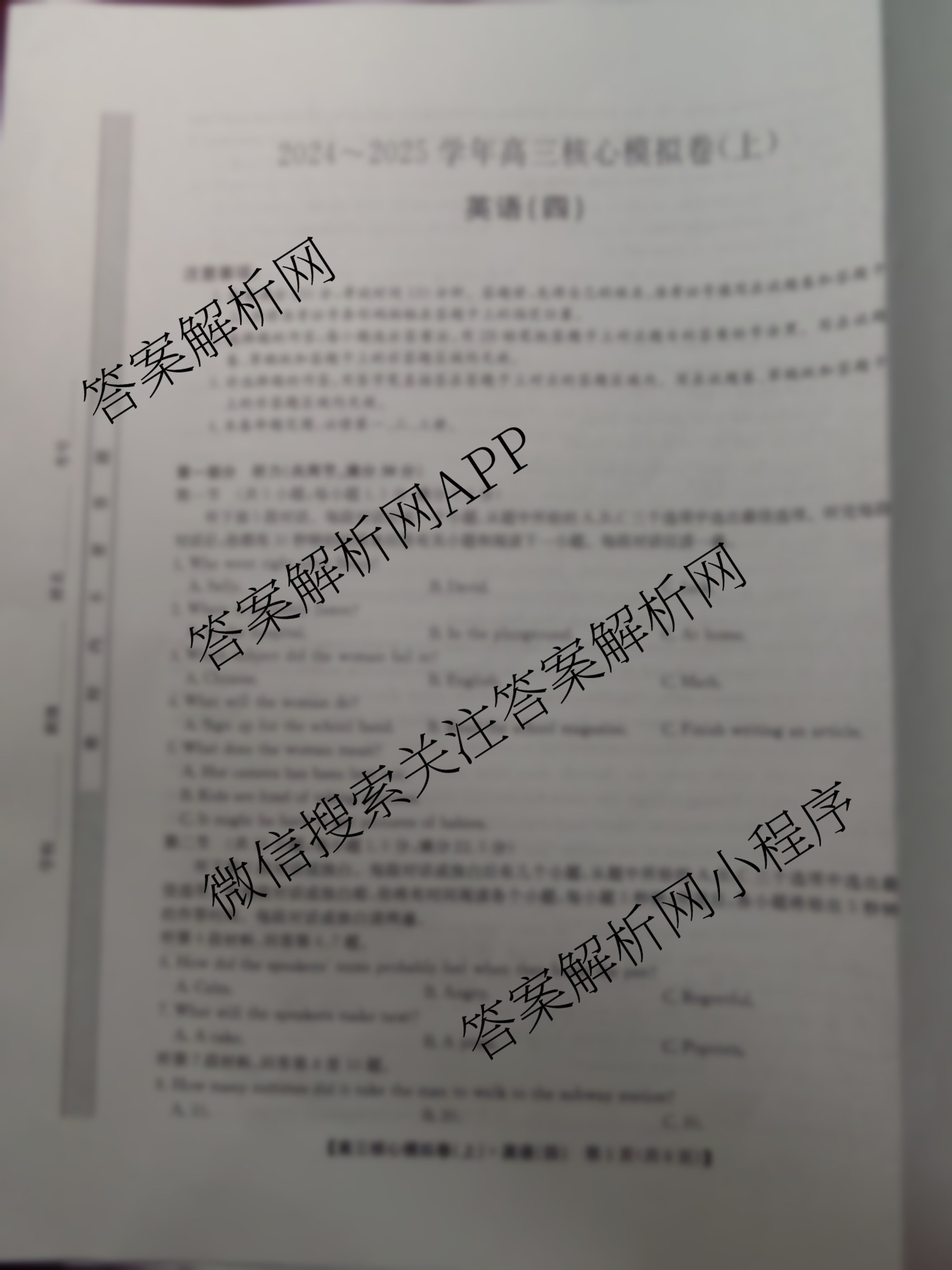 2024~2025(九师联盟)·学年(高三)核心模拟卷(上)(四)4英语试题