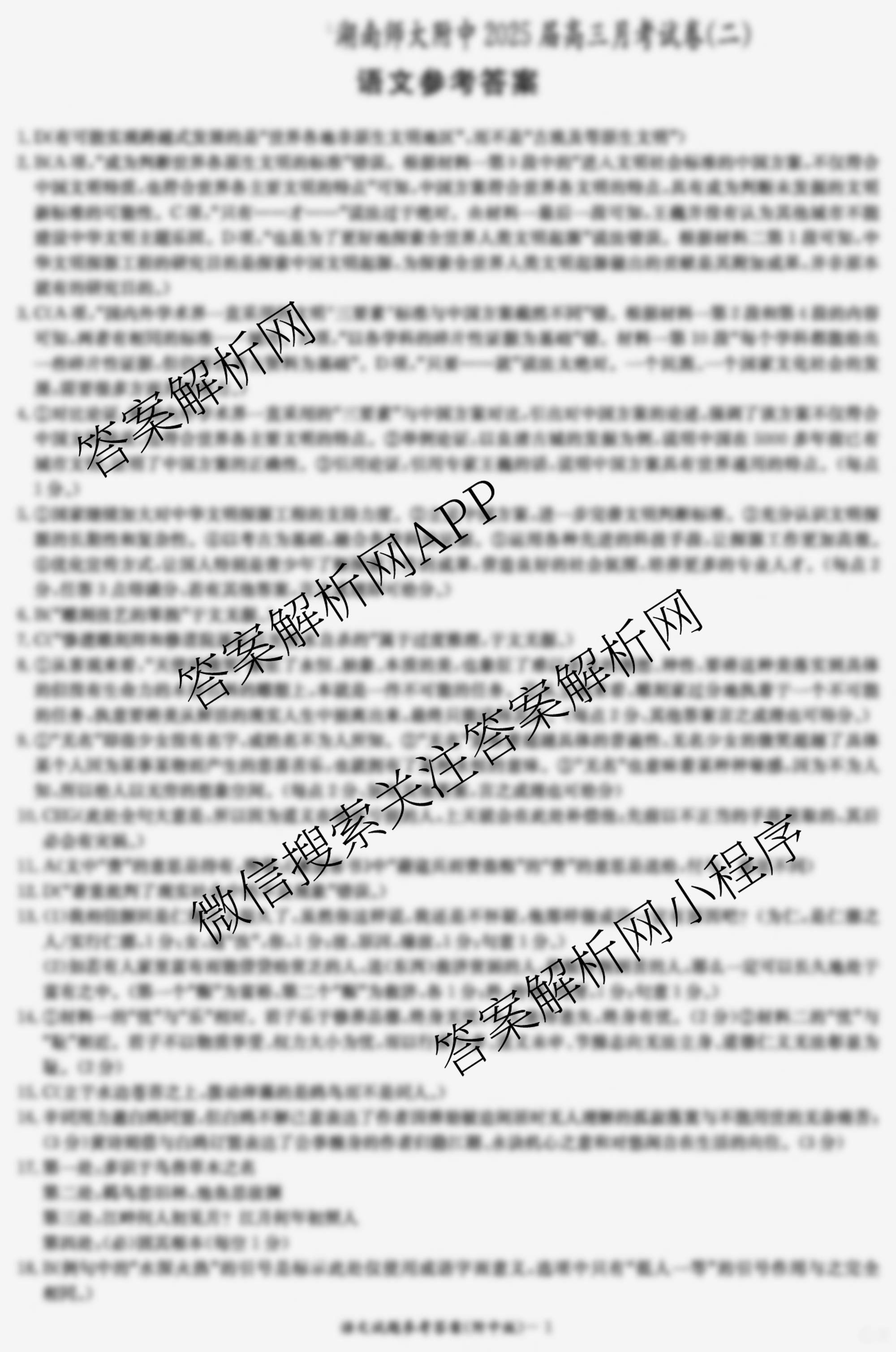 - (高三)[炎德英才大联考]湖南师大附中2025届月考试卷(二)2语文答案
