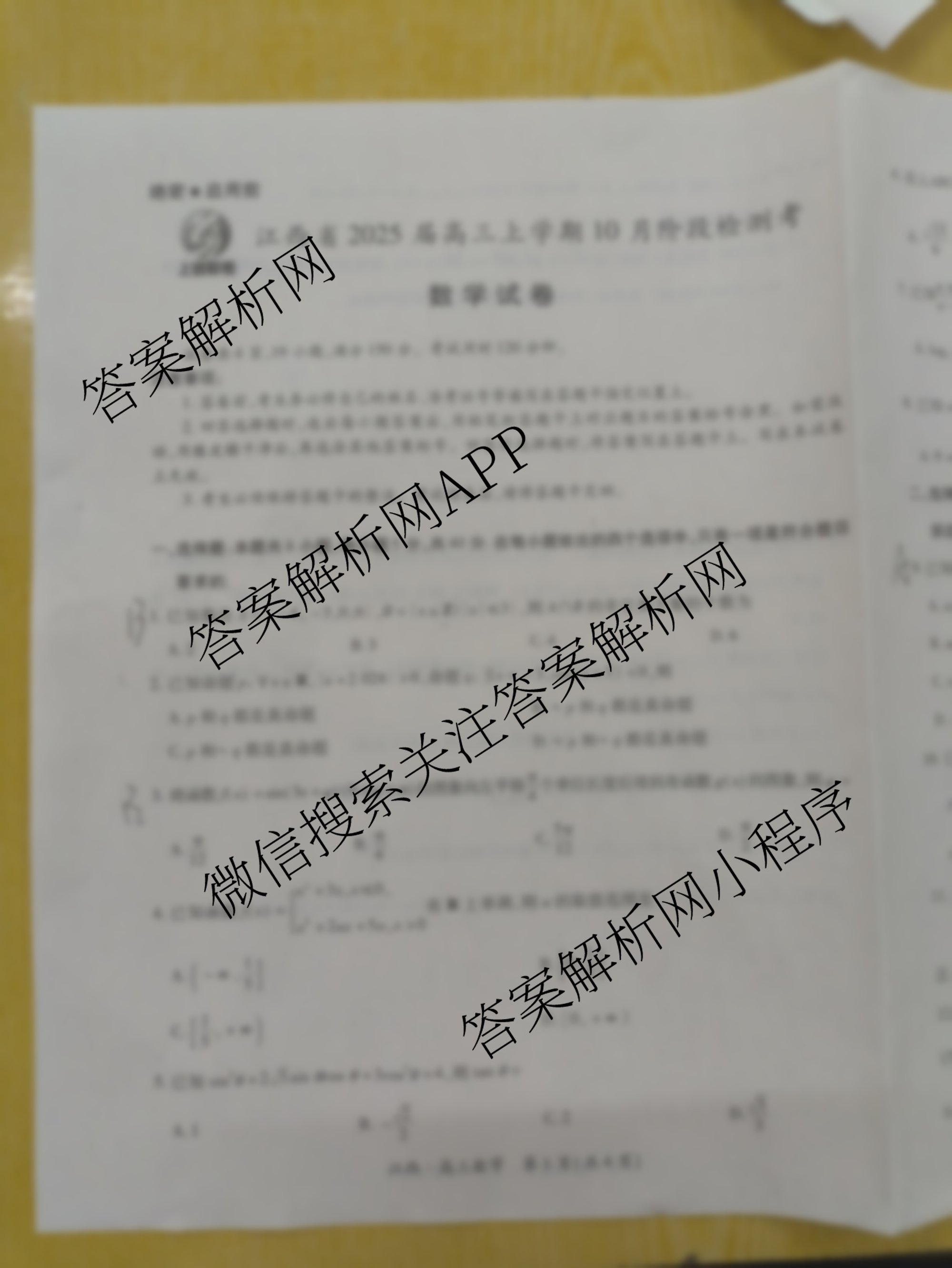 - [高三]上进联考江西省2025届上学期10月阶段检测考数学试题