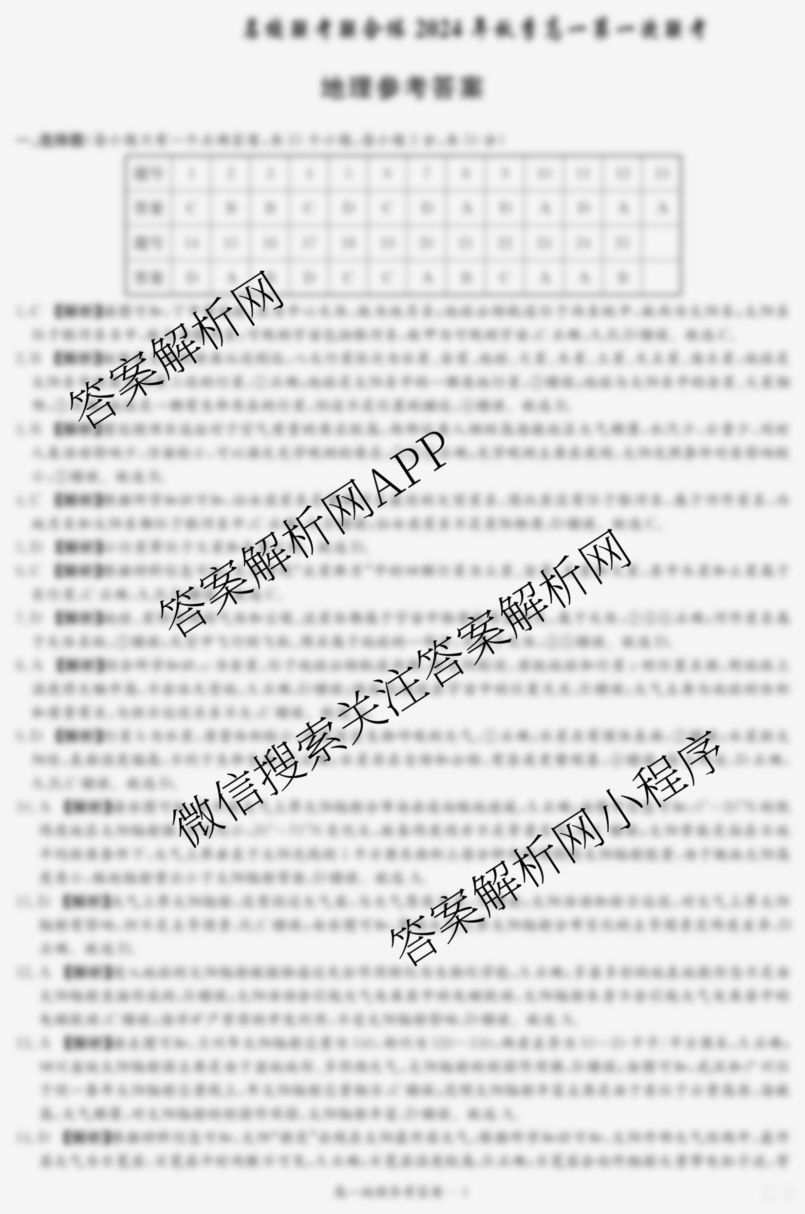- 炎德英才名校联考联合体2024年秋季(高一)第一次联考地理答案