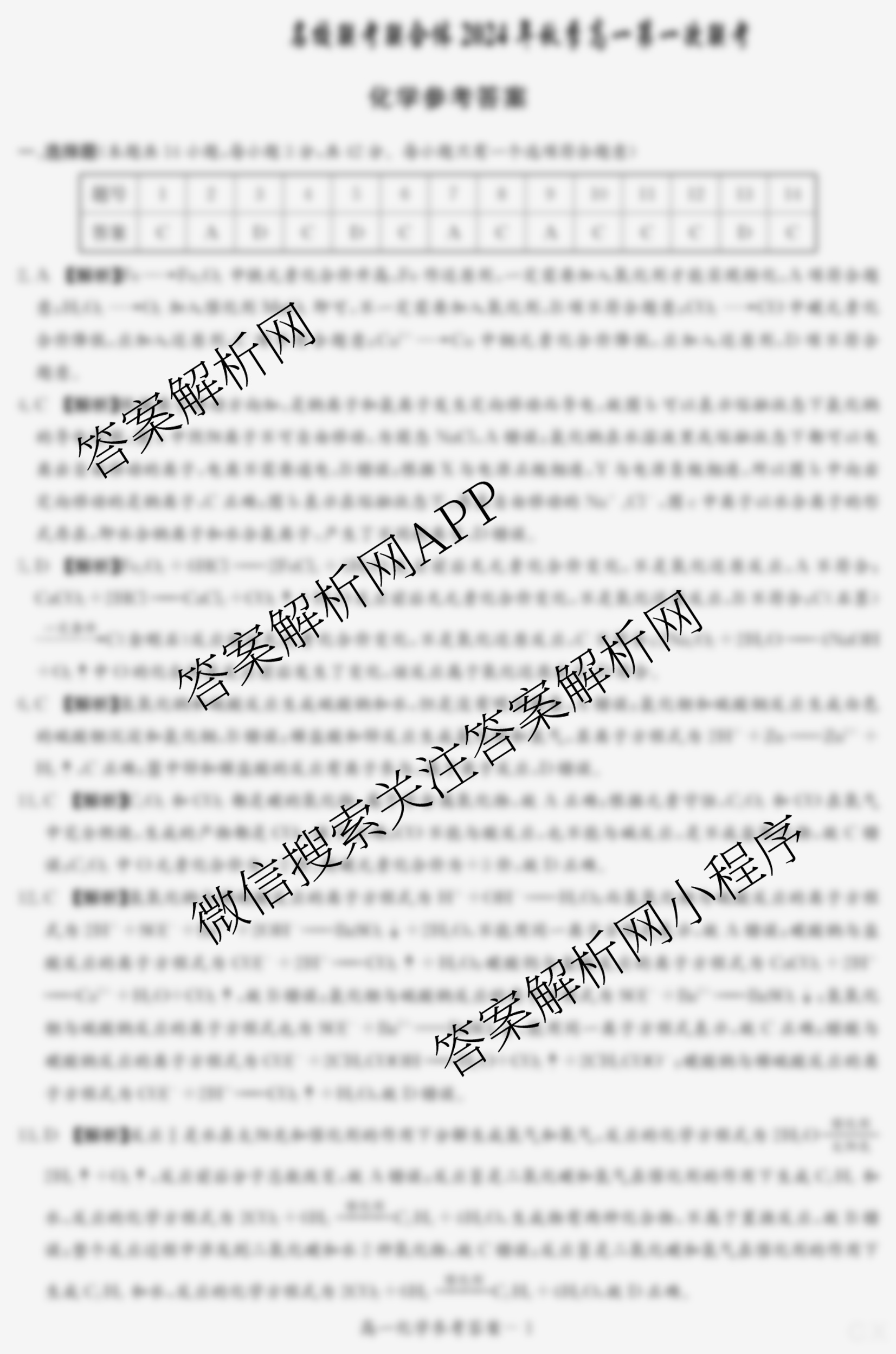 - (高一)炎德英才名校联考联合体2024年秋季第一次联考化学答案