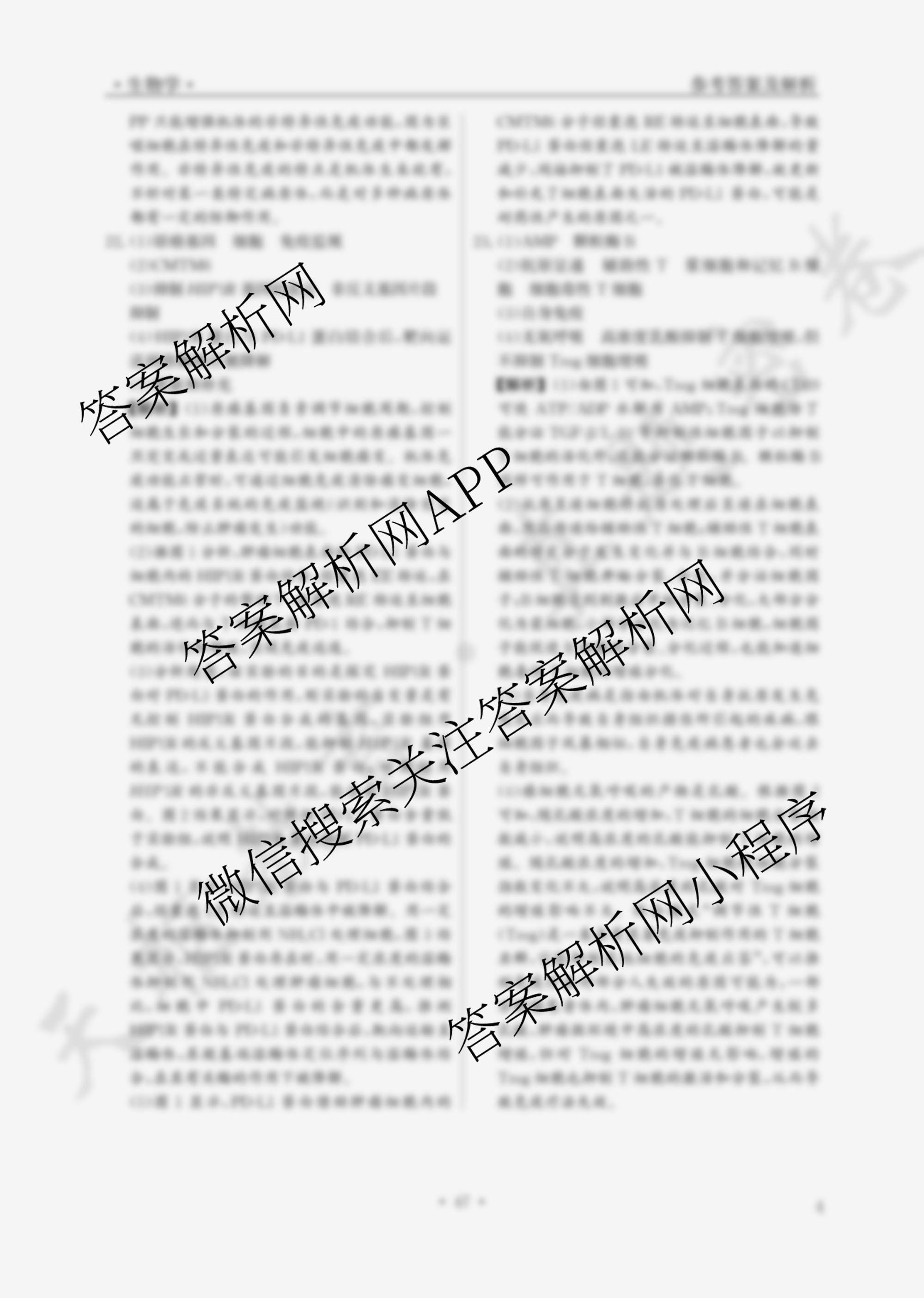 衡水真题密卷2024-2025学年度学科素养周测评 生物(4)(二十)20答案