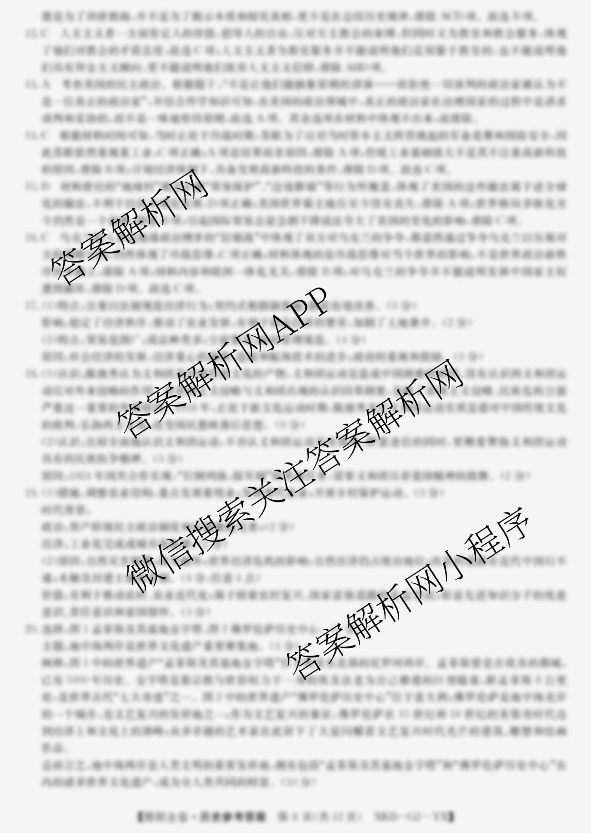 - (XKB-G3)2025届(普通高中学业水平选择性考试模拟金卷)(四)4历史(XKB-G3-YX)答案