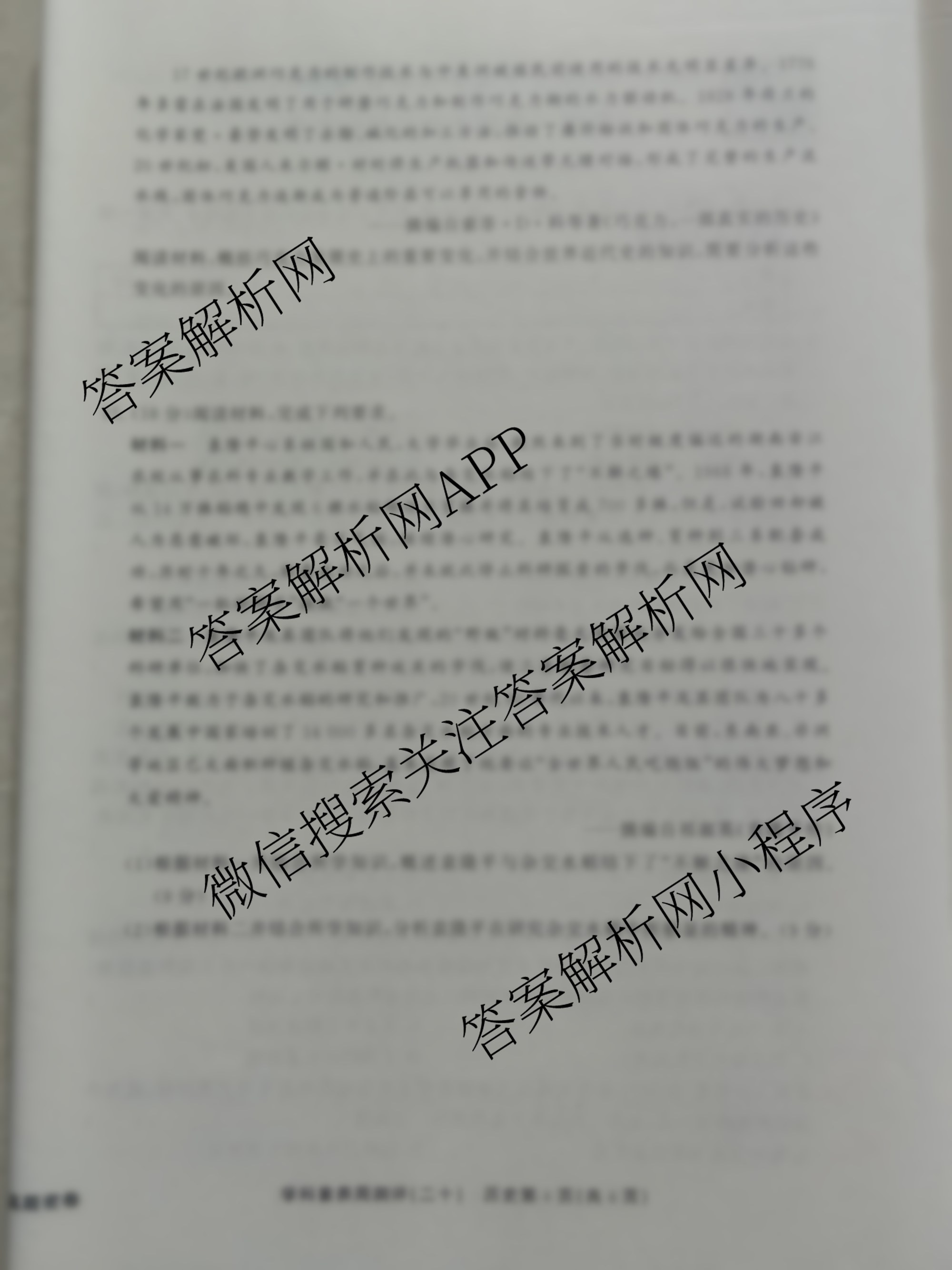 衡水真题密卷2024-2025学年度学科素养周测评 历史(1A)(二十)20试题