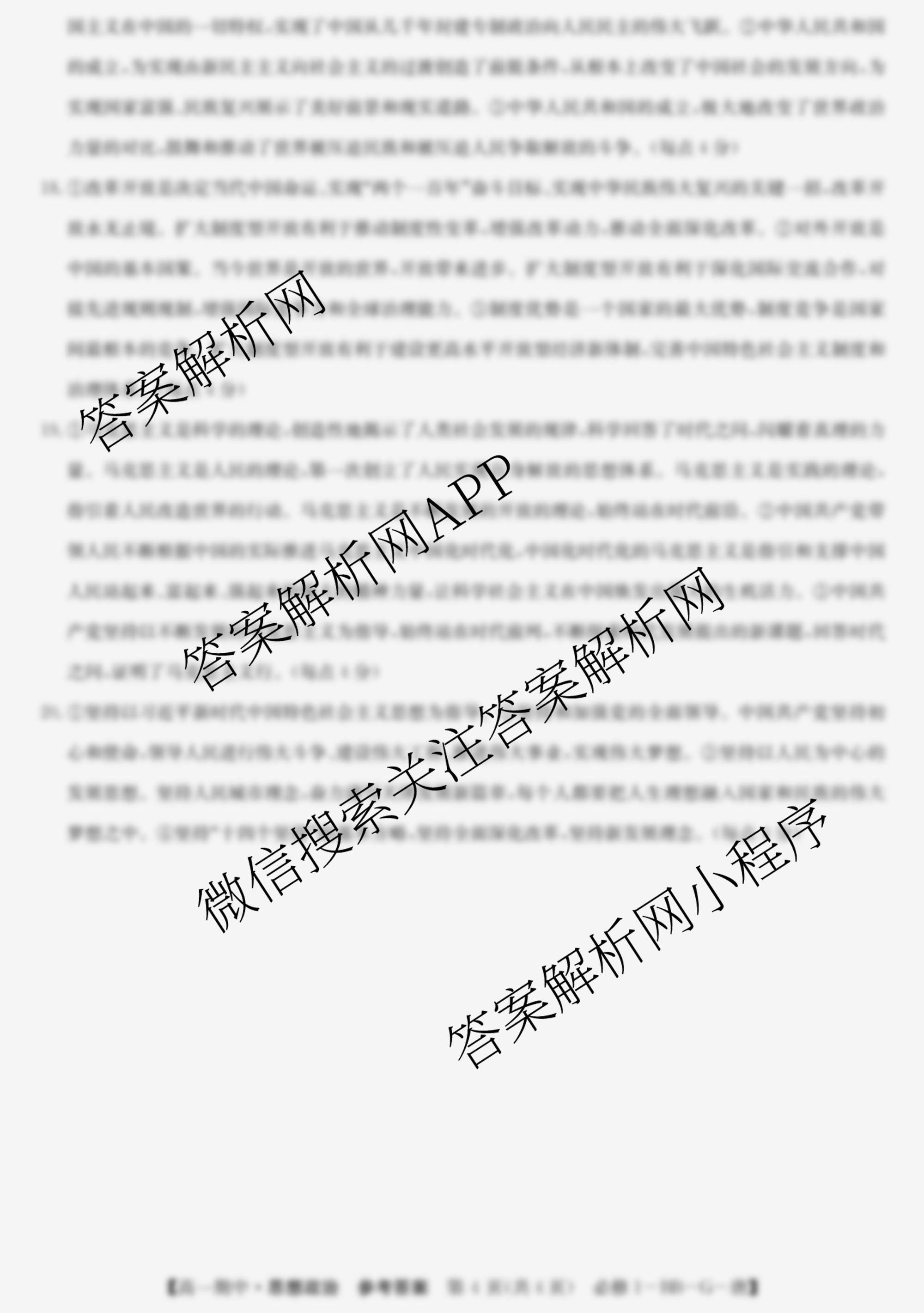 - 2024~2025全国名校[高一]第一学期期中考试试卷 政治(必修1-BB-G-唐)答案