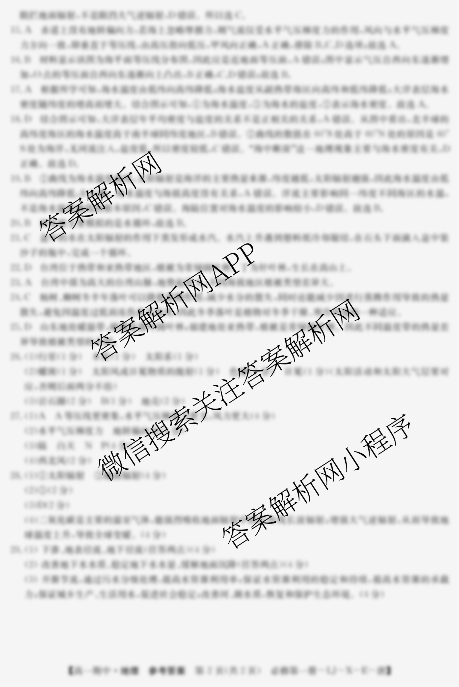 - 2024~2025全国名校[高一]第一学期期中考试试卷 地理(必修第一册-LJ-X-E-唐)答案