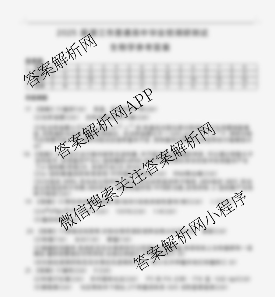 - [上进联考]2025届湛江市普通高中毕业班调研测试(10月)生物答案