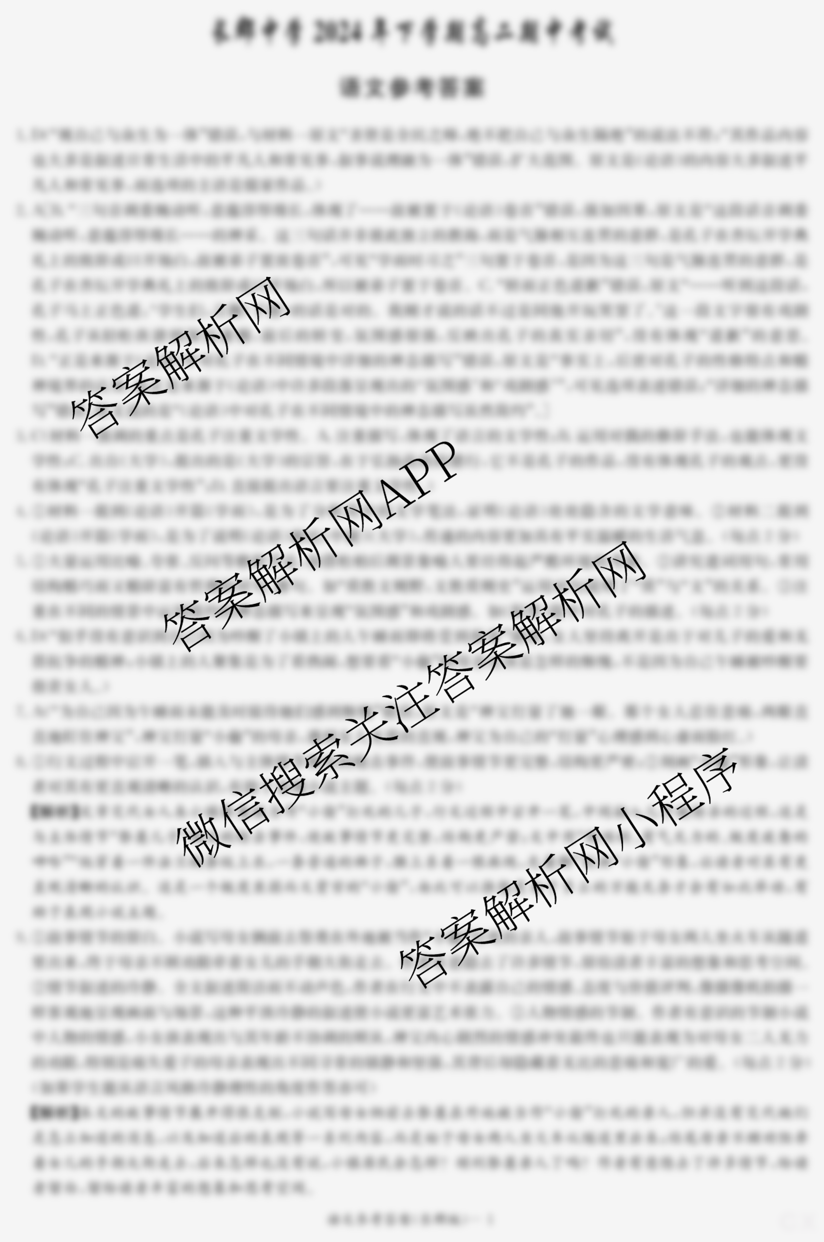 - (高二)长郡中学2024年下学期期中考试语文答案