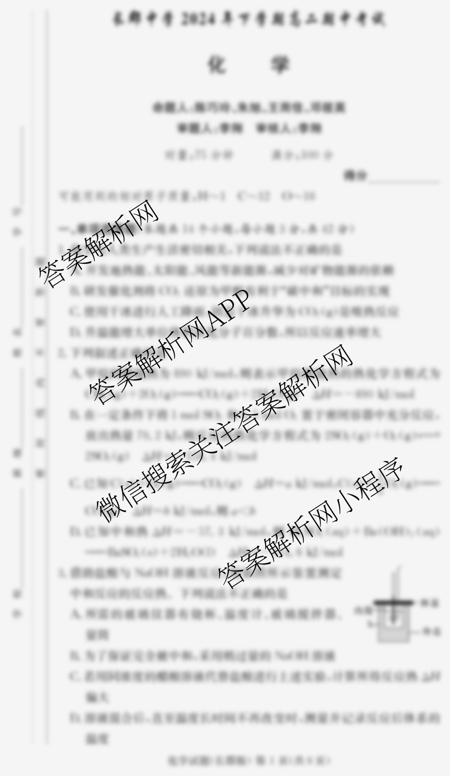 长郡中学2024年下学期高二期中考试化学试题,目前学英语报答案已经汇总了长郡中学2024年下学期高二期中考试化学试题的各科答案和试卷,获取更多炎德英才大联考答案解析,请在关注本站。