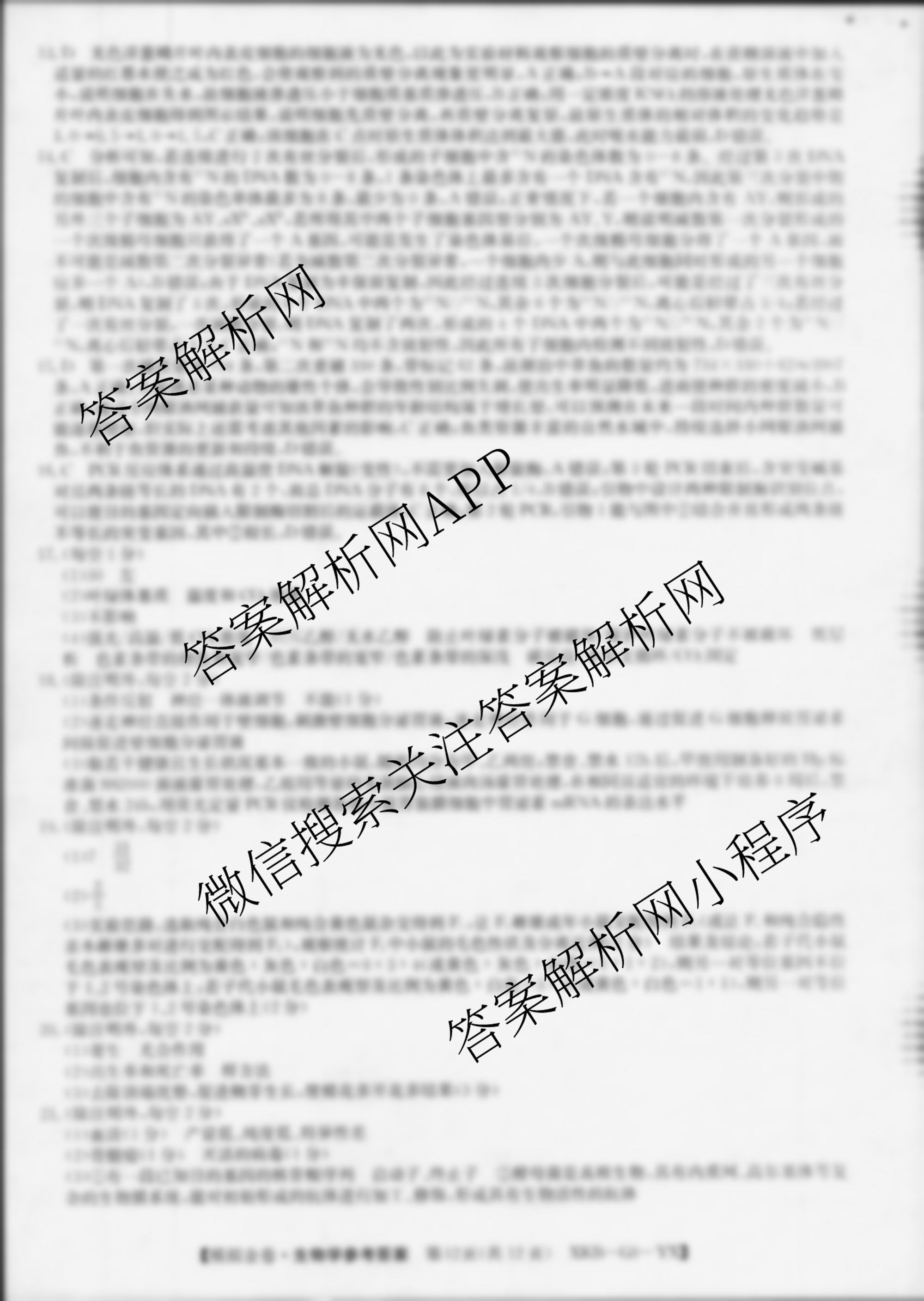 - 2025届(XKB-G9-YX)·(普通高中学业水平选择性考试模拟金卷)(六)6生物(XKB-G9-YX)答案