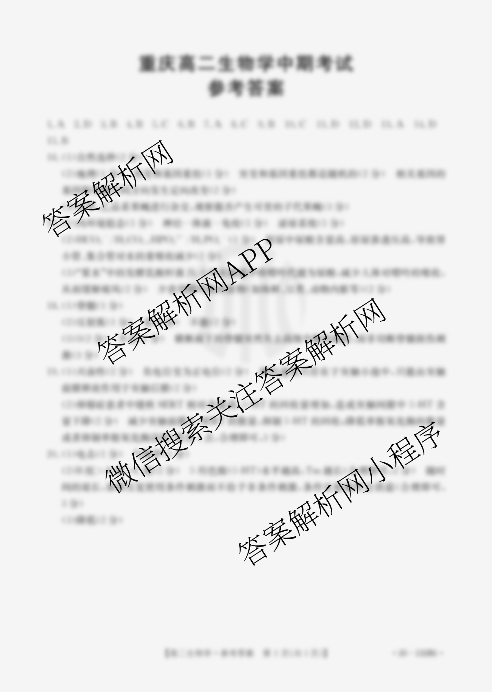 - 2024~2025[高二]重庆中期考试(132B)生物(B1)答案